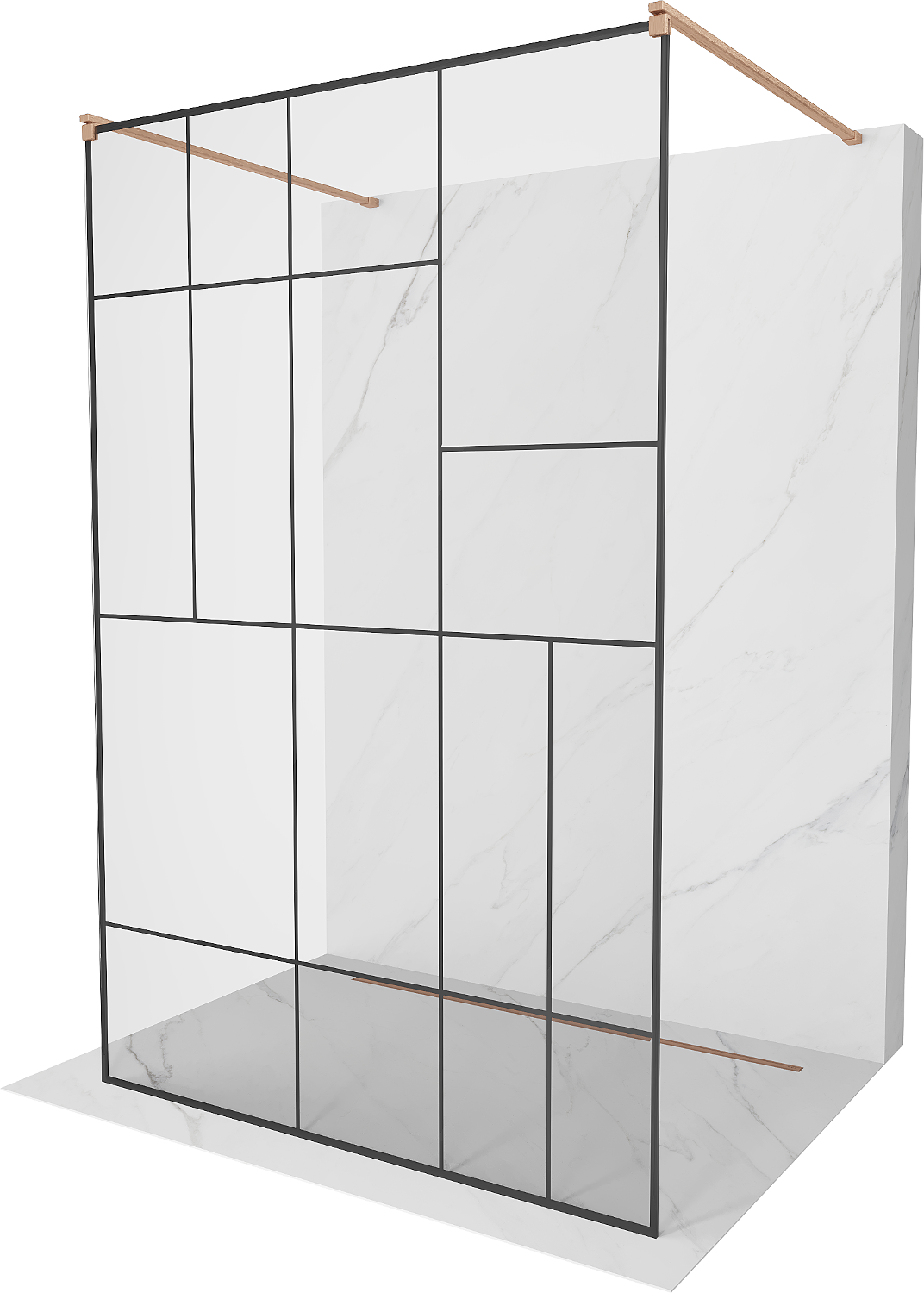 Mexen Kioto paroi de douche autoportante 110 x 200 cm, motif noir 8 mm, cuivre brossé - 800-110-002-65-78