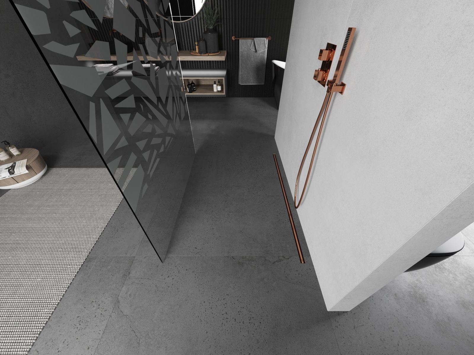 Mexen Kioto cloison de douche autoportante 130 x 200 cm, motif blanc 8 mm, cuivre brossé - 800-130-002-65-85