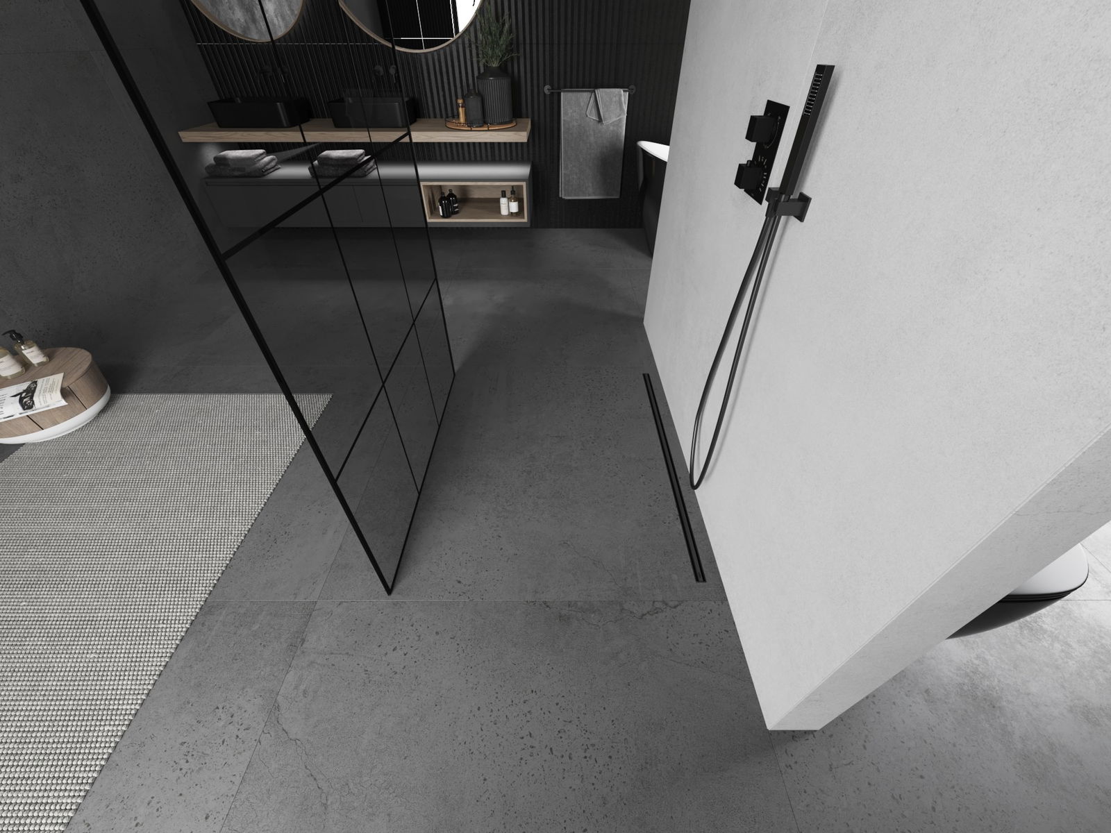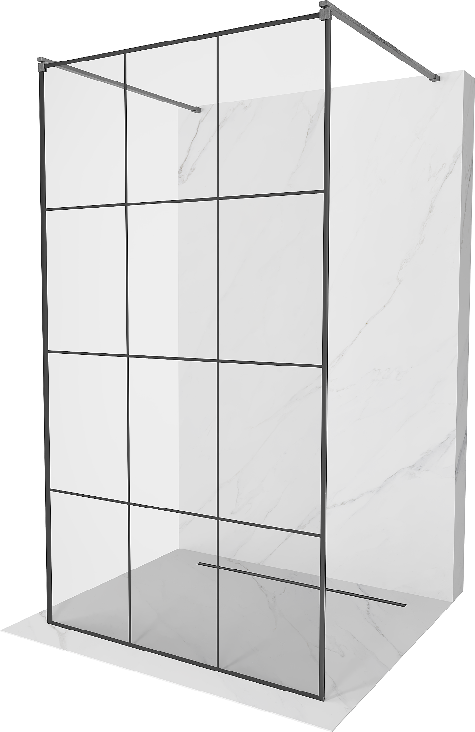 Mexen Kioto paroi de douche autoportante 120 x 200 cm, grille noire 8 mm, gris canon brossé - 800-120-002-66-77