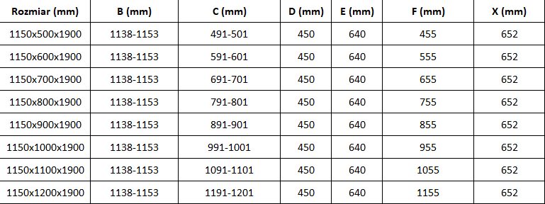 Taille : 115x100 cm (porte 115 cm, paroi 100 cm)