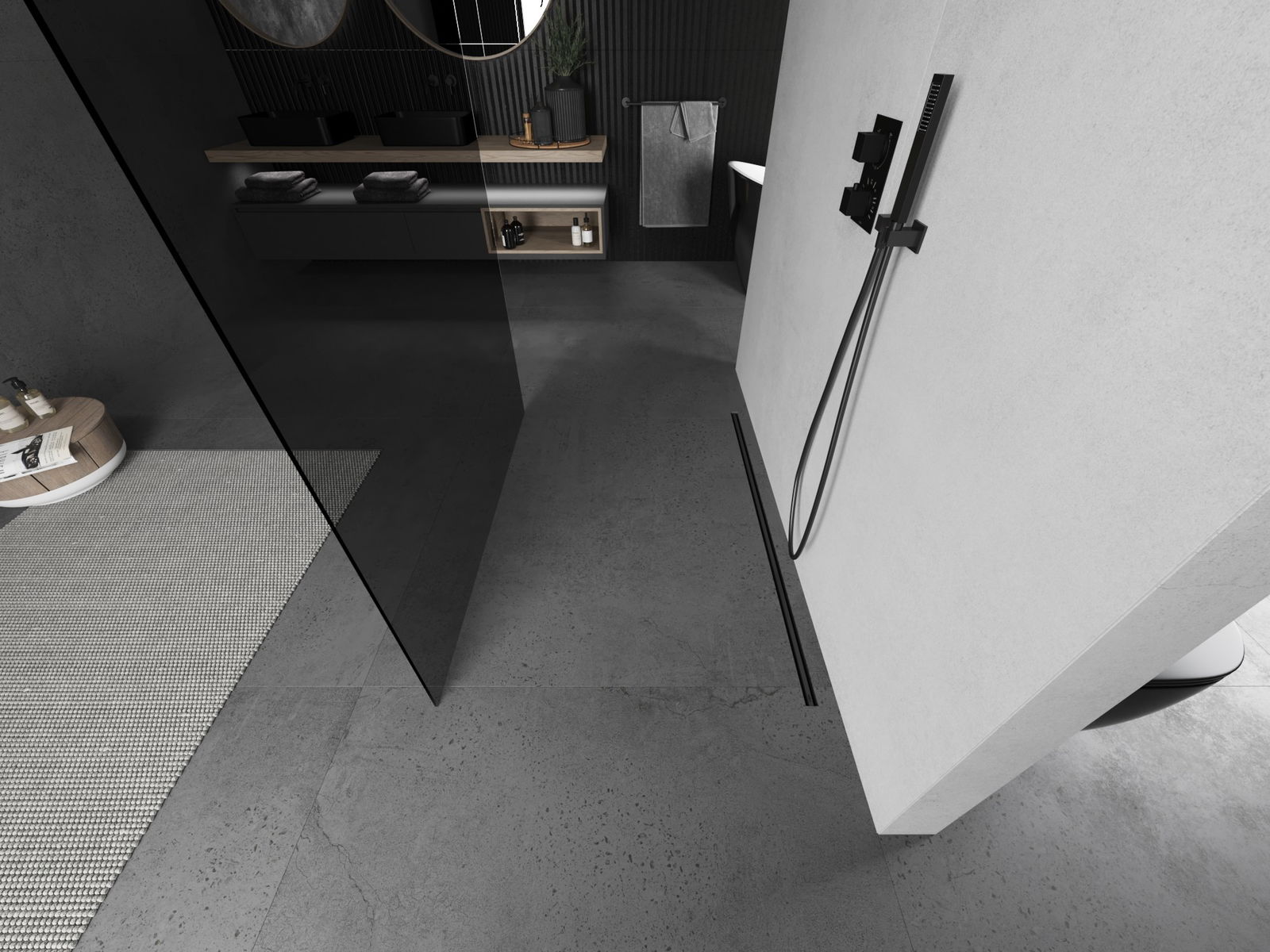 Mexen Kioto paroi de douche autoportante 130 x 200 cm, graphite 8 mm, métal canon - 800-130-002-95-40