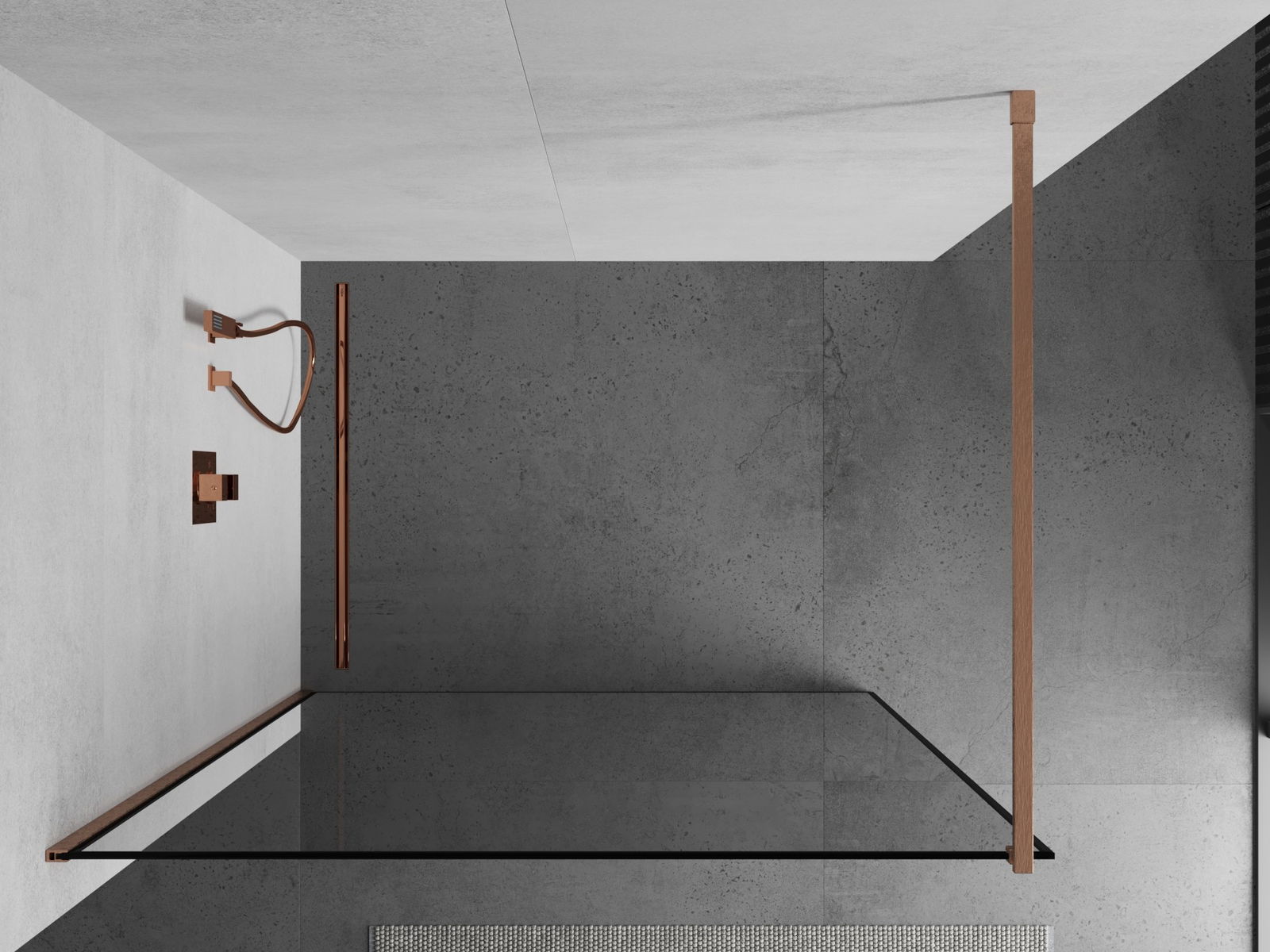 Mexen Kioto paroi de douche Walk-in 110 x 200 cm, cadre noir 8 mm, cuivre brossé - 800-110-101-65-70