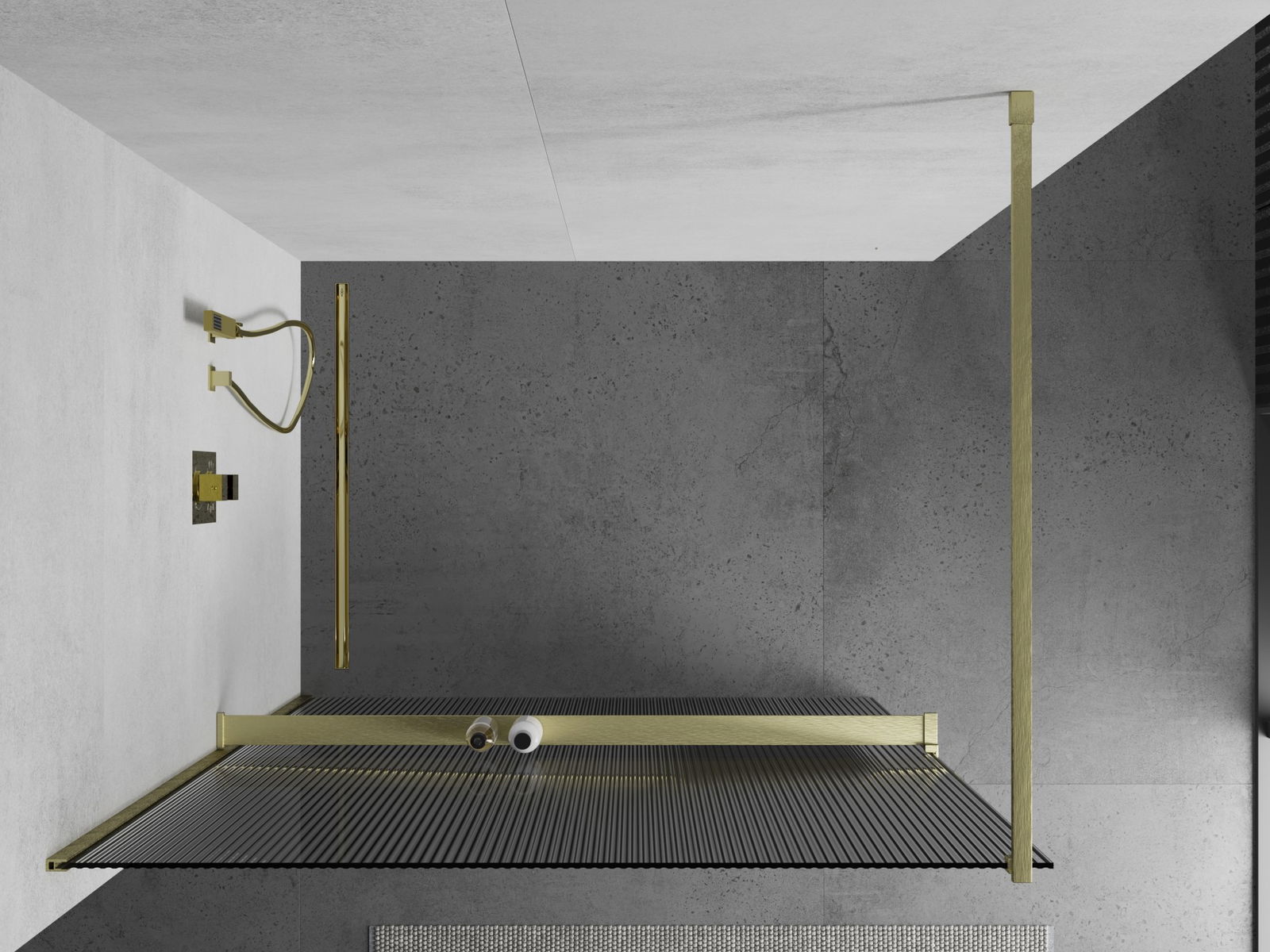 Mexen Kioto+ paroi de douche avec étagère Walk-in 90 x 200 cm, striée, or brossé - 800-090-121-55-09
