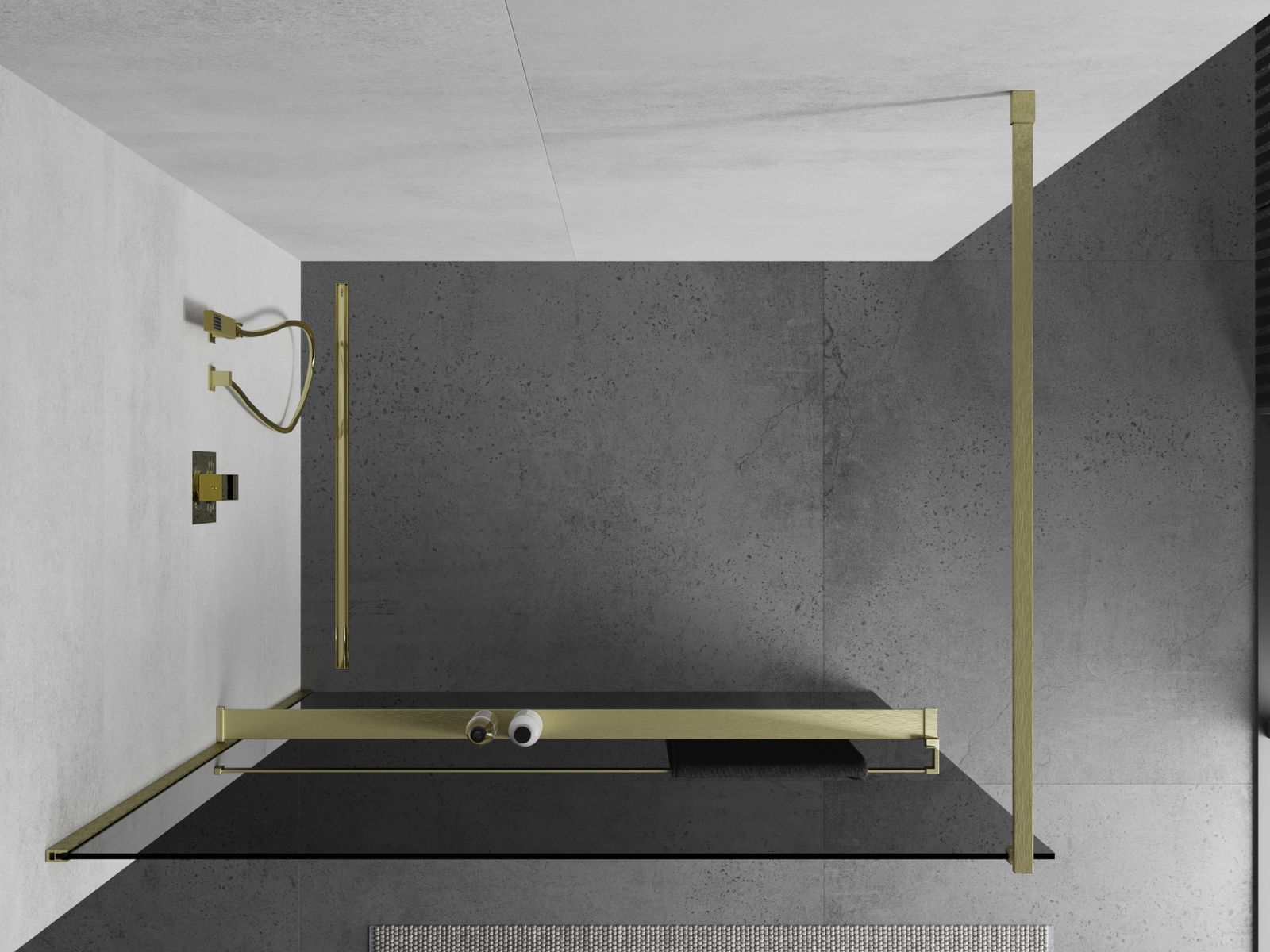 Mexen Kioto+ paroi de douche avec étagère Walk-in 120 x 200 cm, graphite, or brossé - 800-120-121-55-40