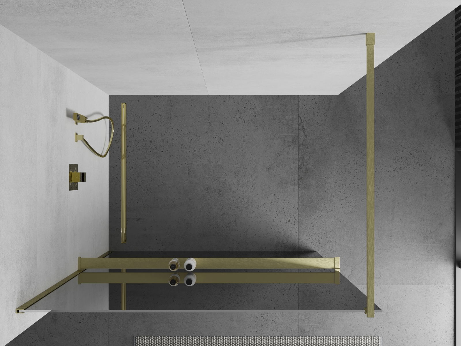 Mexen Kioto+ paroi de douche avec étagère Walk-in 130 x 200 cm, miroir, or brossé - 800-130-121-55-50