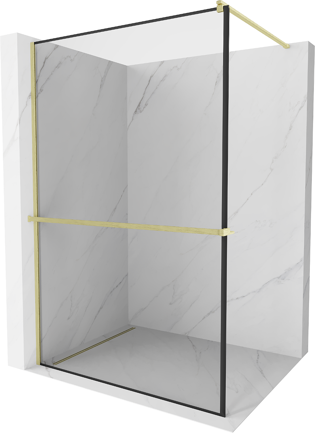Mexen Kioto+ paroi de douche avec étagère Walk-in 100 x 200 cm, cadre noir, or brossé - 800-100-121-55-70