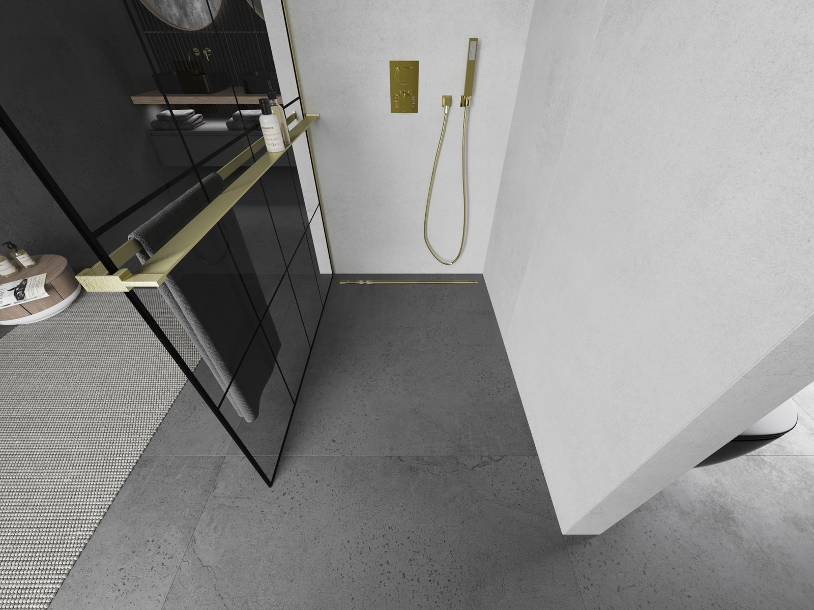 Mexen Kioto+ paroi de douche avec étagère Walk-in 130 x 200 cm, grille noire, doré brossé - 800-130-121-55-77