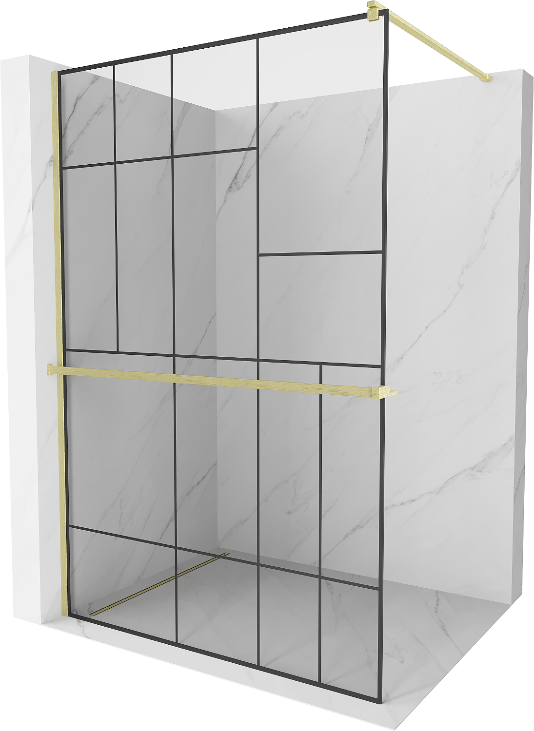 Mexen Kioto+ paroi de douche avec étagère Walk-in 80 x 200 cm, motif noir, or brossé - 800-080-121-55-78