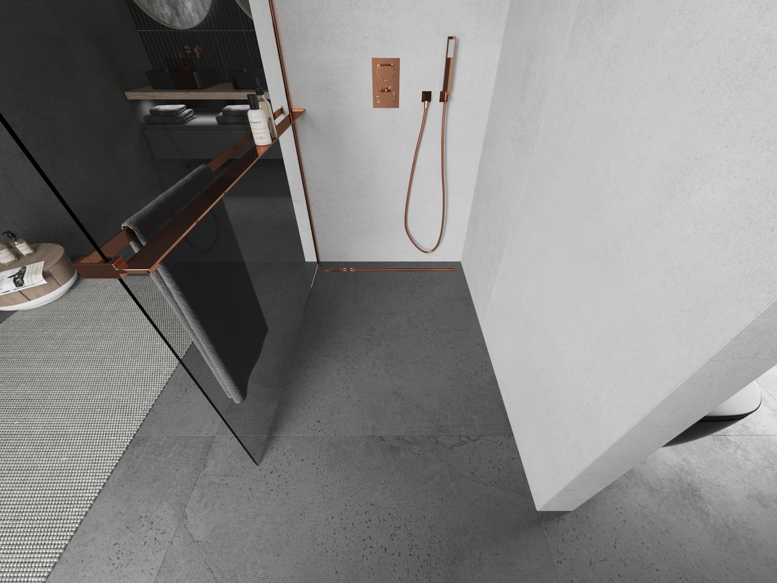 Mexen Kioto+ paroi de douche avec étagère Walk-in 75 x 200 cm, transparent, or rose - 800-075-121-60-00