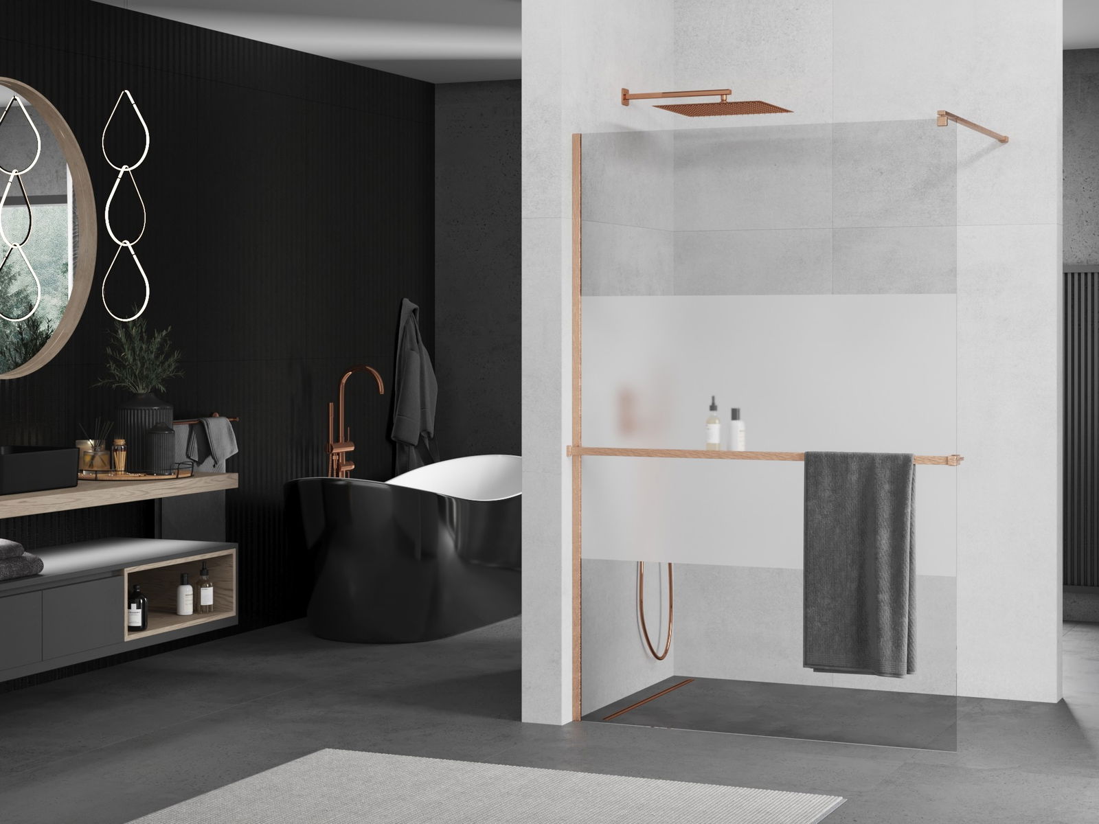 Mexen Kioto+ paroi de douche avec étagère Walk-in 100 x 200 cm, transparent/verre dépoli, cuivre brossé - 800-100-121-65-35