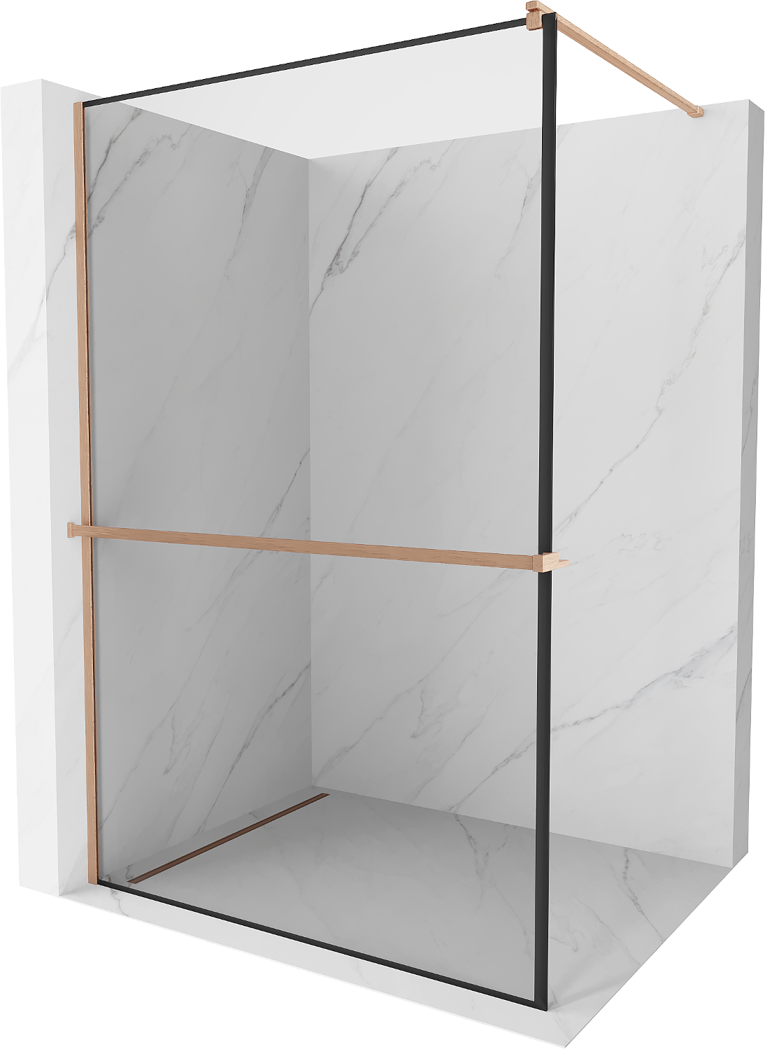 Mexen Kioto+ paroi de douche avec étagère Walk-in 110 x 200 cm, cadre noir, cuivre brossé - 800-110-121-65-70