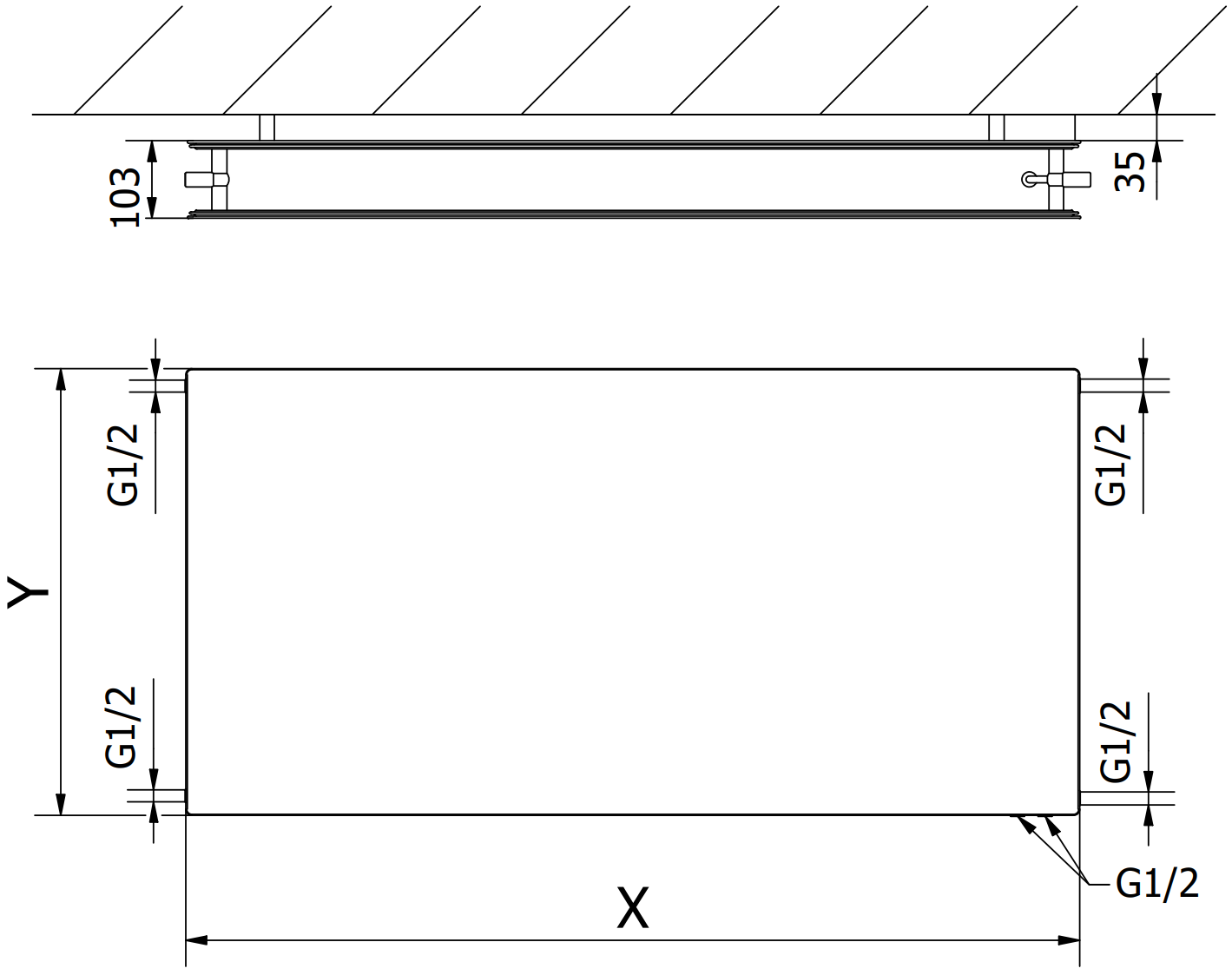 Entraxe des canaux d'eau verticaux : 33,3 mm