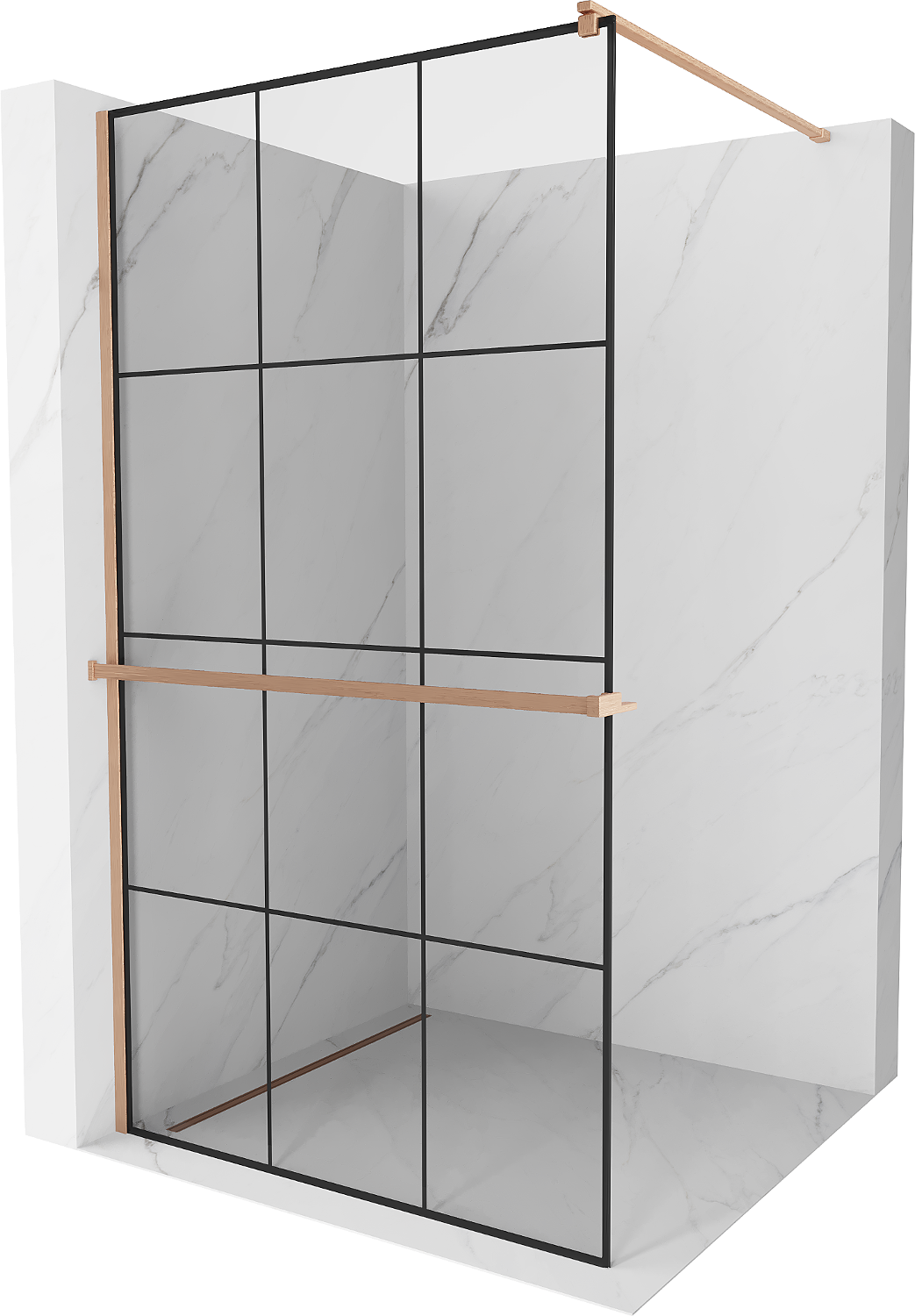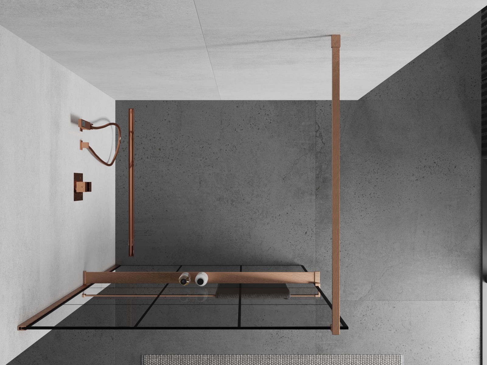 Mexen Kioto+ paroi de douche avec étagère Walk-in 120 x 200 cm, grille noire, cuivre brossé - 800-120-121-65-77