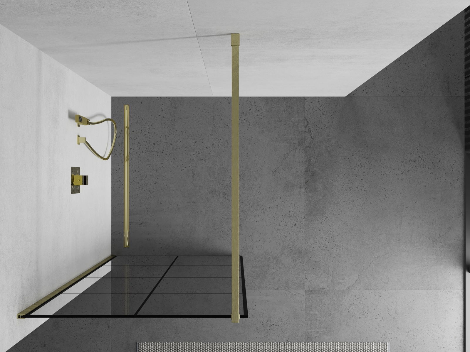 Mexen Kioto Paroi de douche Walk-in 80 x 200 cm, grille noire 8 mm, doré brossé - 800-080-101-55-77