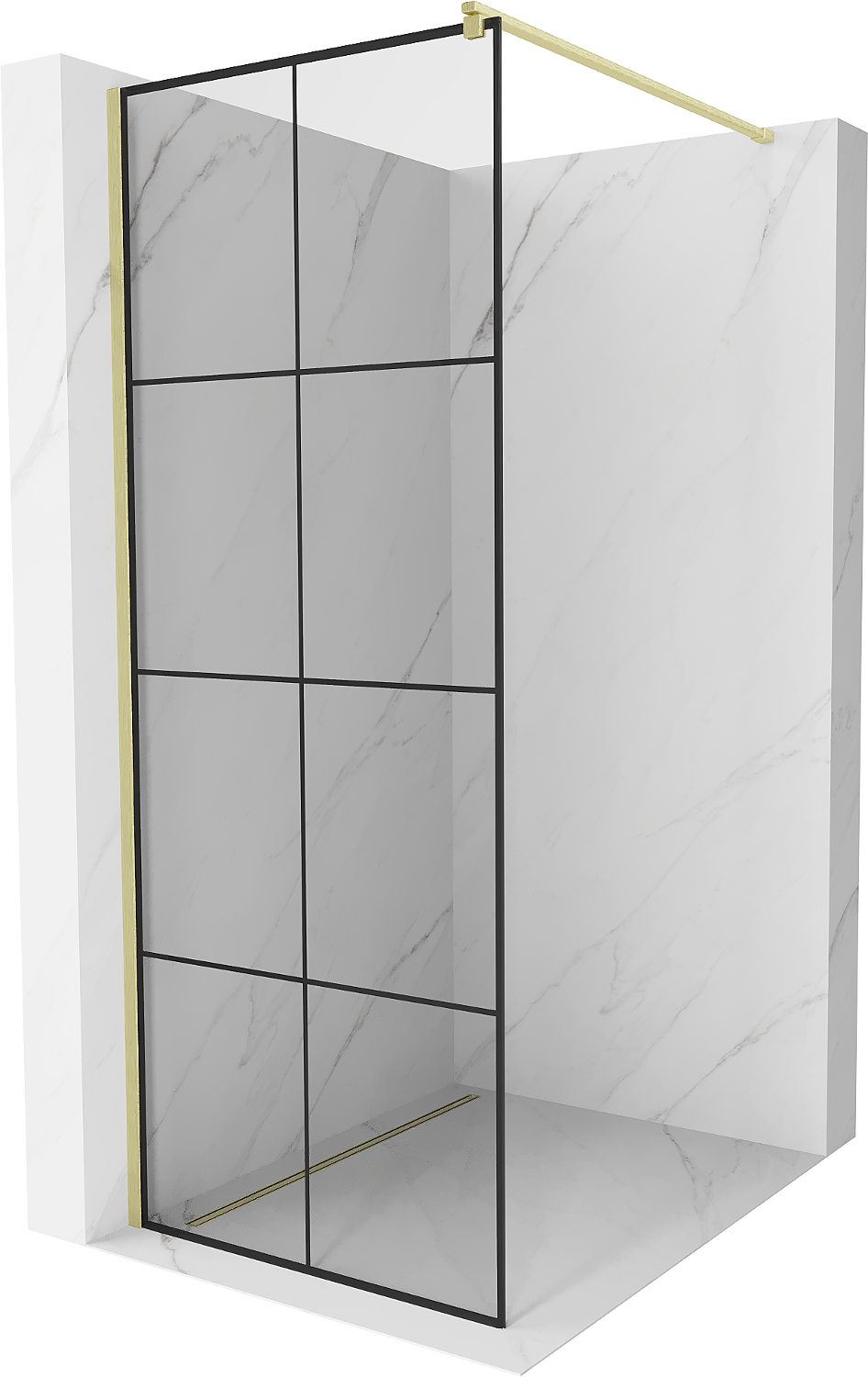 Mexen Kioto Paroi de douche Walk-in 90 x 200 cm, grille noire 8 mm, or brossé - 800-090-101-55-77