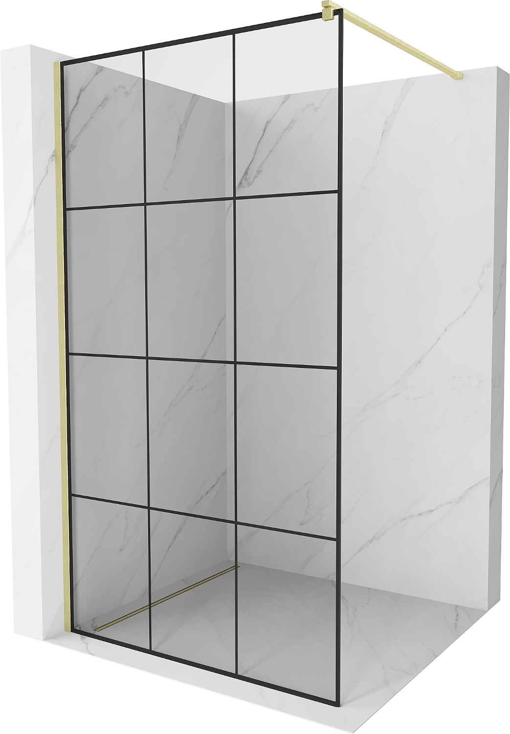 Mexen Kioto Paroi de douche Walk-in 100 x 200 cm, carreaux noirs 8 mm, or brossé - 800-100-101-55-77
