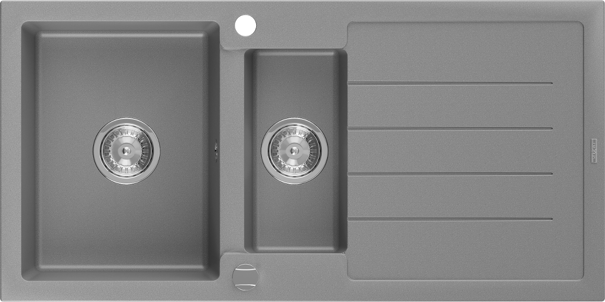 Mexen Andres évier en granit 1,5 bac avec égouttoir 1000 x 500 mm, gris, siphon chromé - 6515101510-71