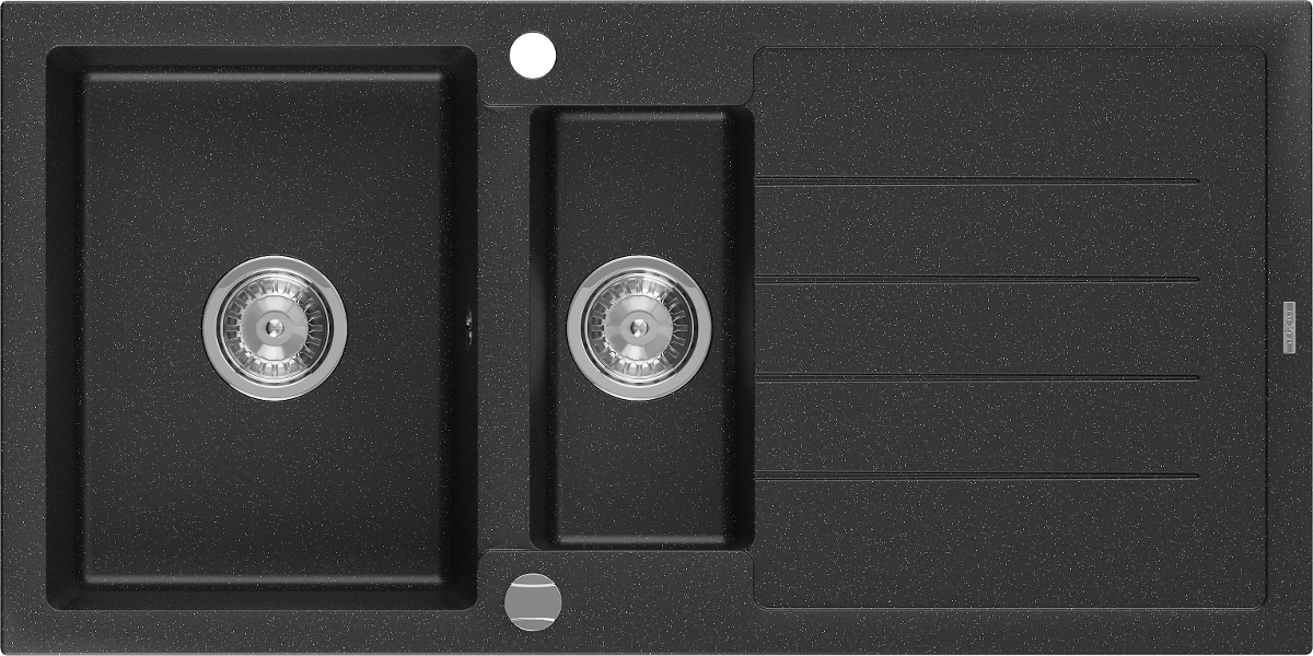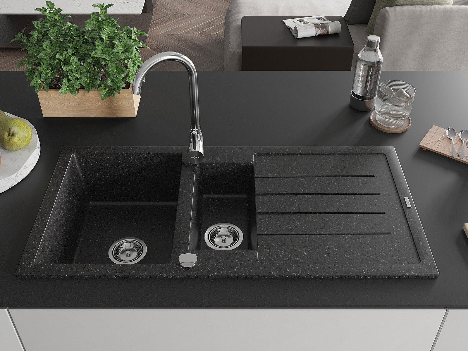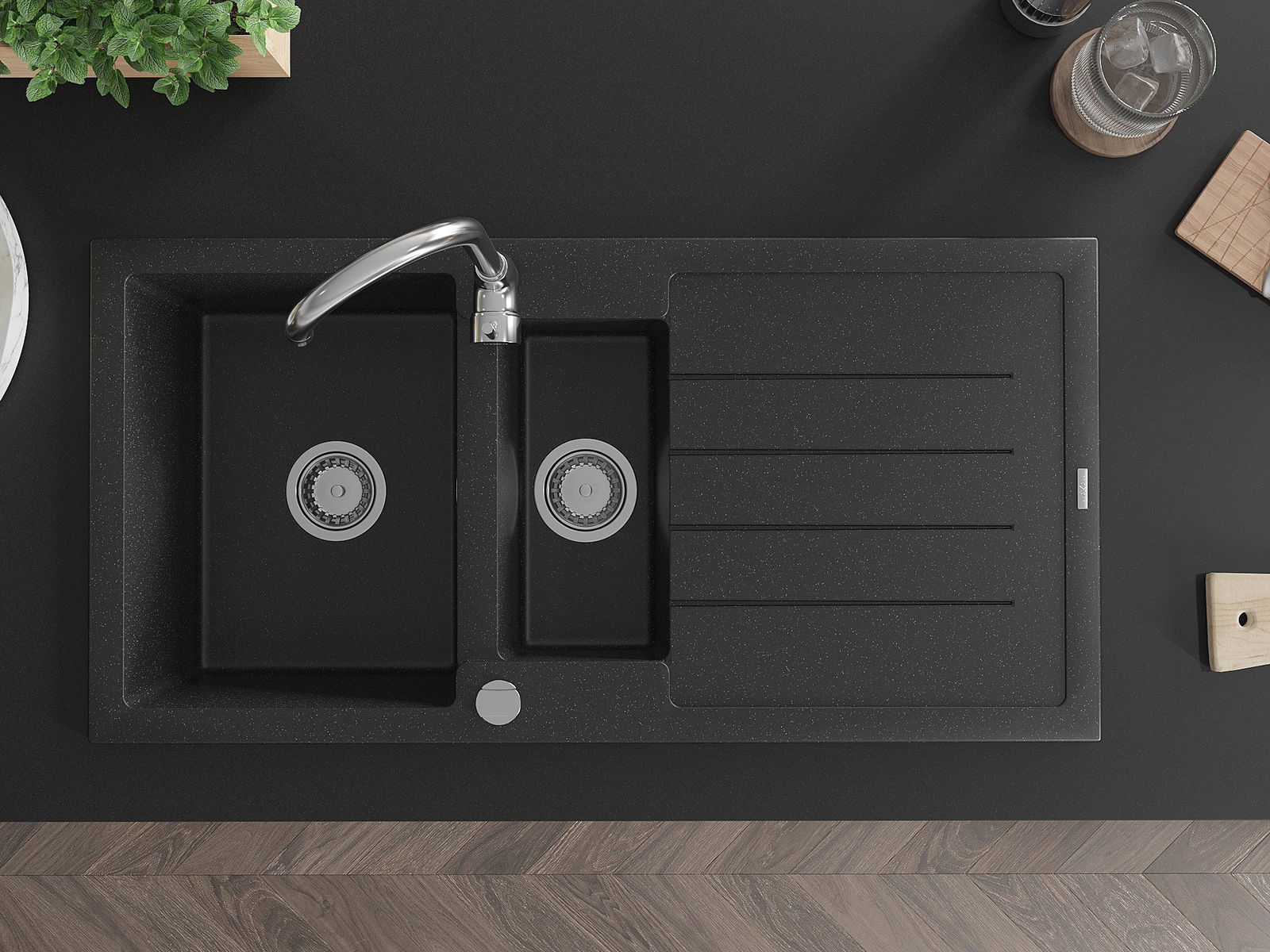 Mexen Andres évier en granit 1,5 bac avec égouttoir 1000 x 500 mm, noir/métallique argent, siphon chromé - 6515101510-73