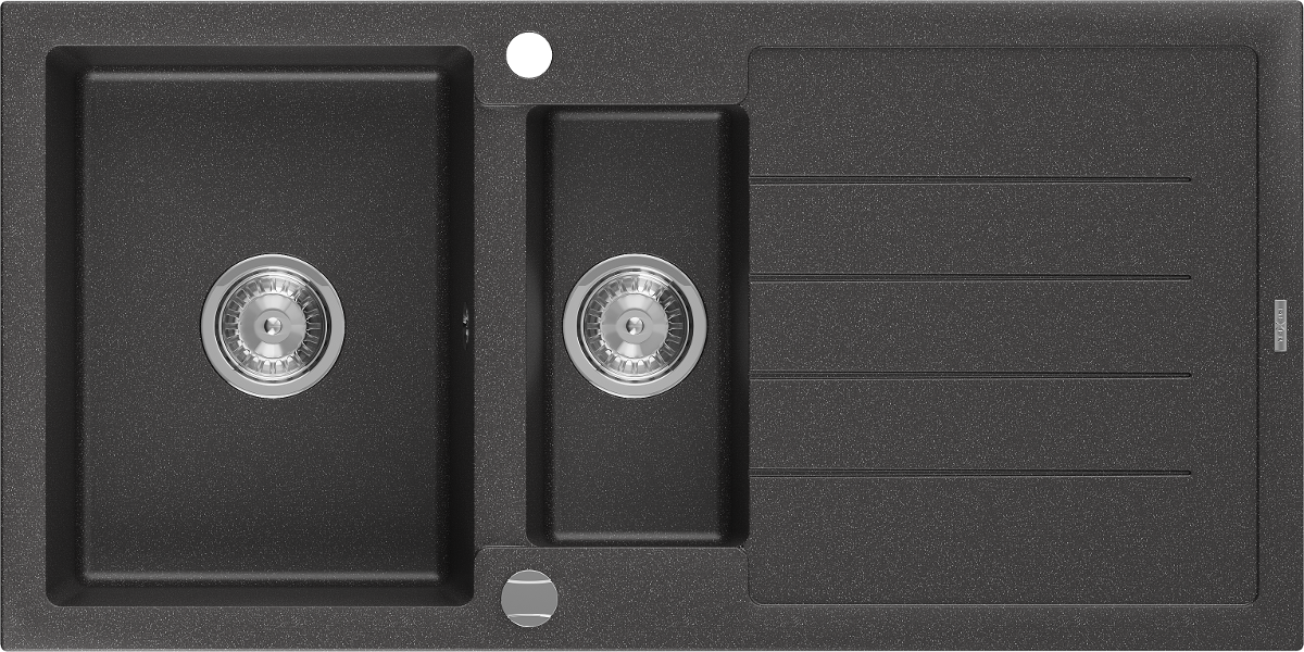 L'évier est doté de deux trous fraisés de 35 mm de diamètre, auto-perforables. Ils permettent notamment d'installer un distributeur de liquide, ce qui éliminera les bouteilles en plastique dans la cuisine et lui apportera une finition élégante.
