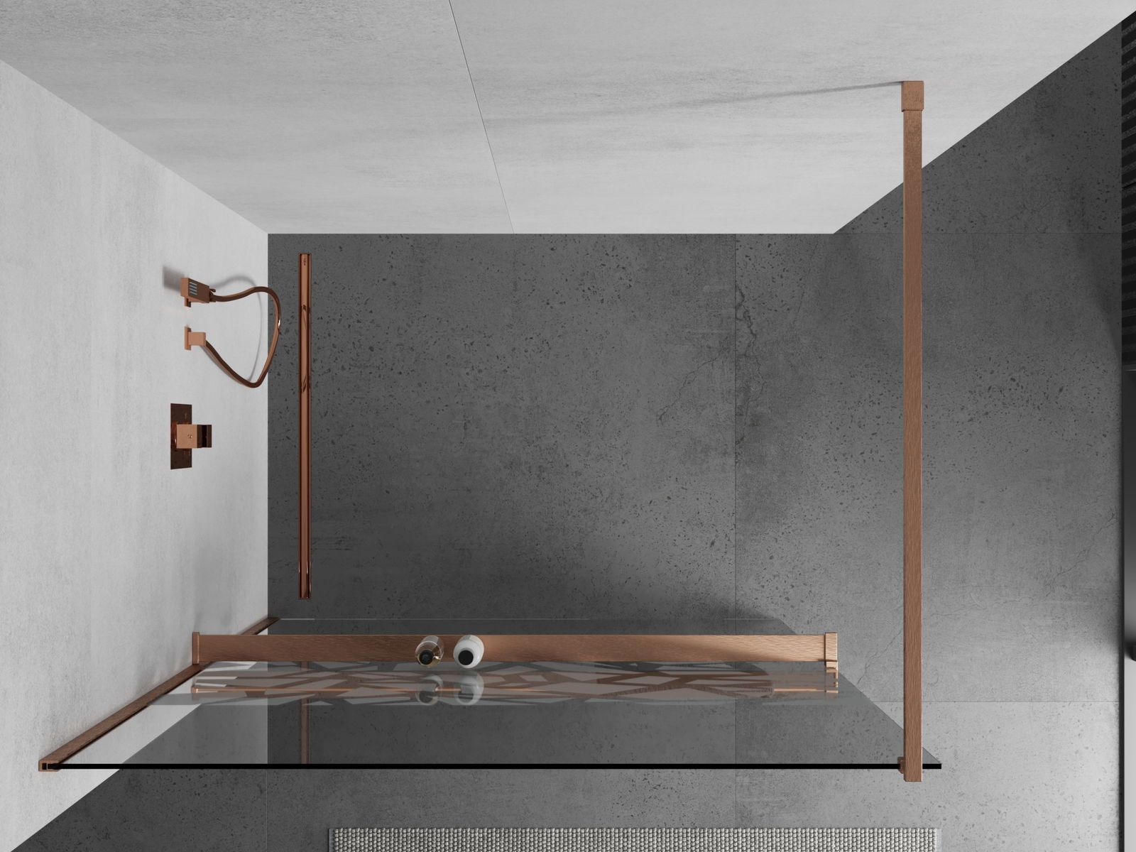 Mexen Kioto+ paroi de douche avec étagère Walk-in 70 x 200 cm, motif blanc, cuivre brossé - 800-070-121-65-85