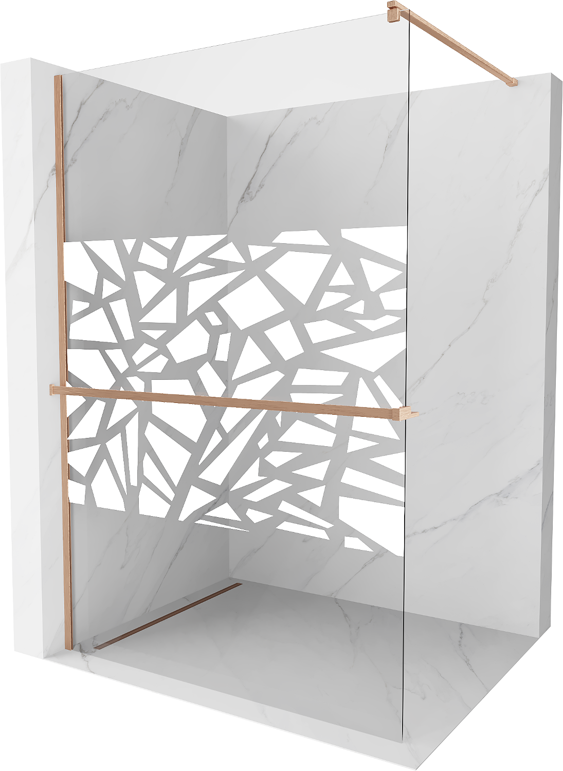 Mexen Kioto+ paroi de douche avec étagère Walk-in 120 x 200 cm, motif blanc, cuivre brossé - 800-120-121-65-85