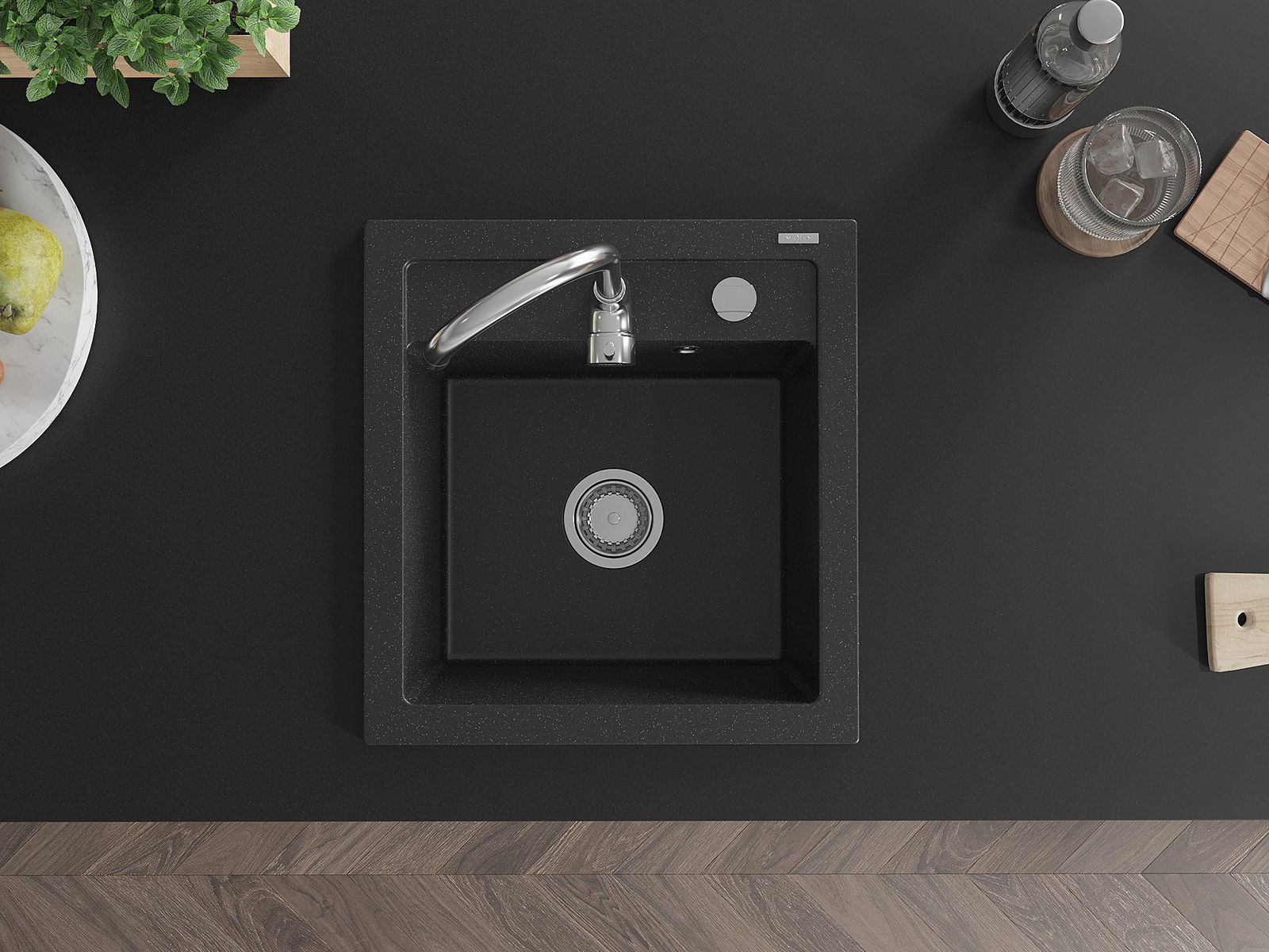 Mexen Vito évier en granit 1 bac 520 x 490 mm, noir/métallisé argent, siphon chromé - 6503521000-73