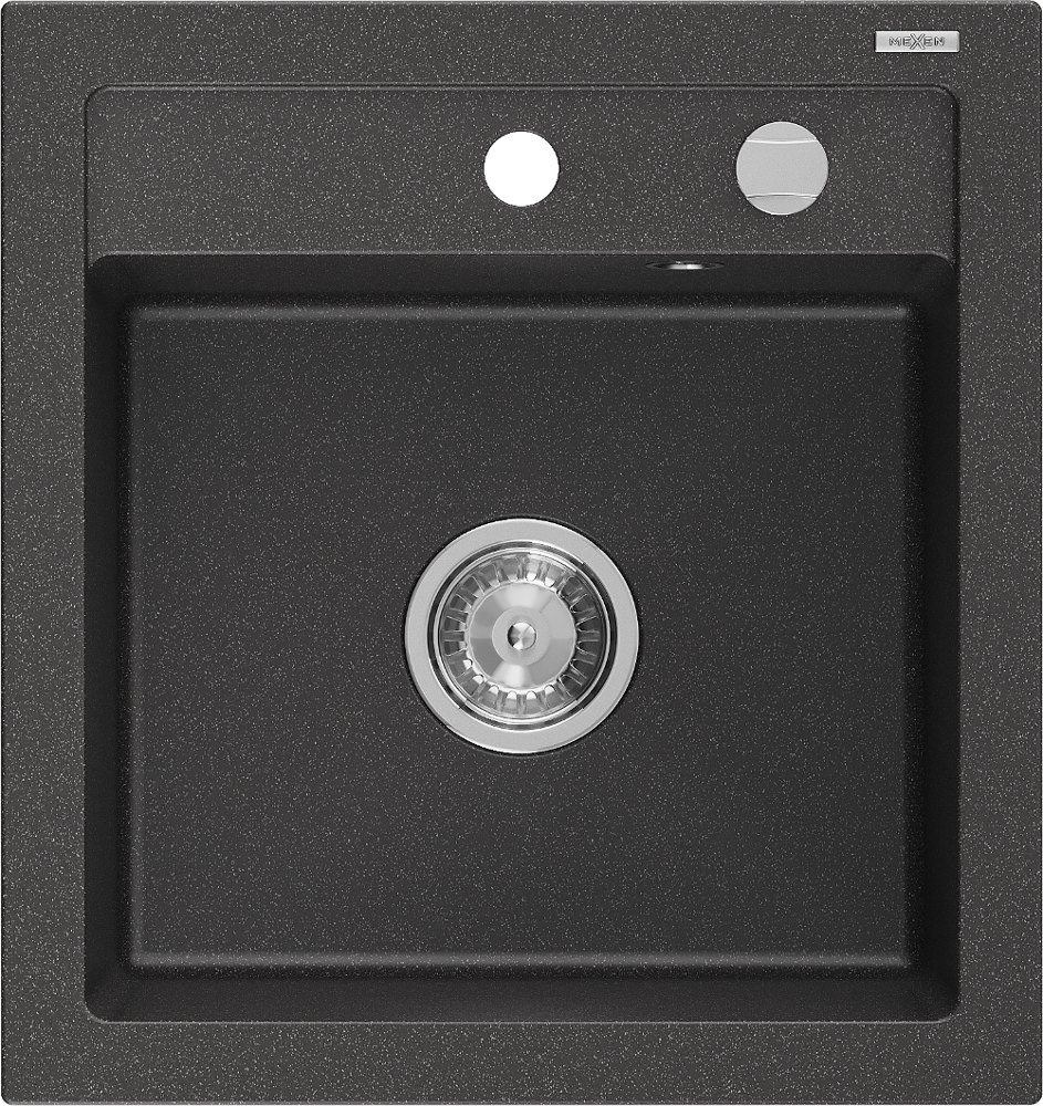 Mexen Vito évier en granit 1 bac 520 x 490 mm, noir moucheté, siphon chromé - 6503521000-76