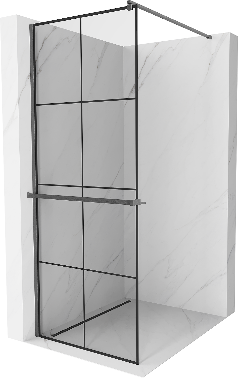 Mexen Kioto+ paroi de douche avec étagère Walk-in 80 x 200 cm, grille noire, gris canon brossé - 800-080-121-66-77
