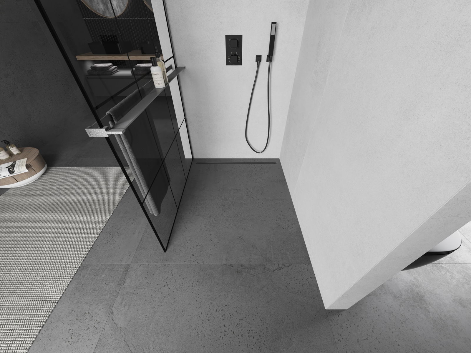 Le support à serviette dans la paroi de douche est une solution très pratique et confortable. Pendant la douche, la serviette est toujours à portée de main, facilitant une utilisation sans entrave. C'est également un endroit idéal pour sécher la serviette.