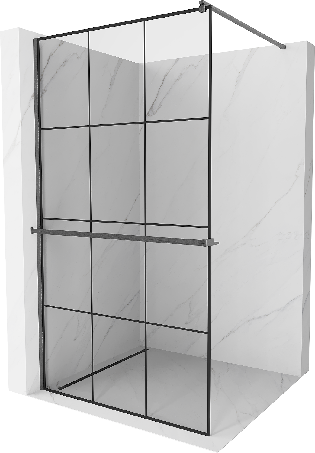 Mexen Kioto+ paroi de douche avec étagère Walk-in 110 x 200 cm, grille noire, gris gun brossé - 800-110-121-66-77