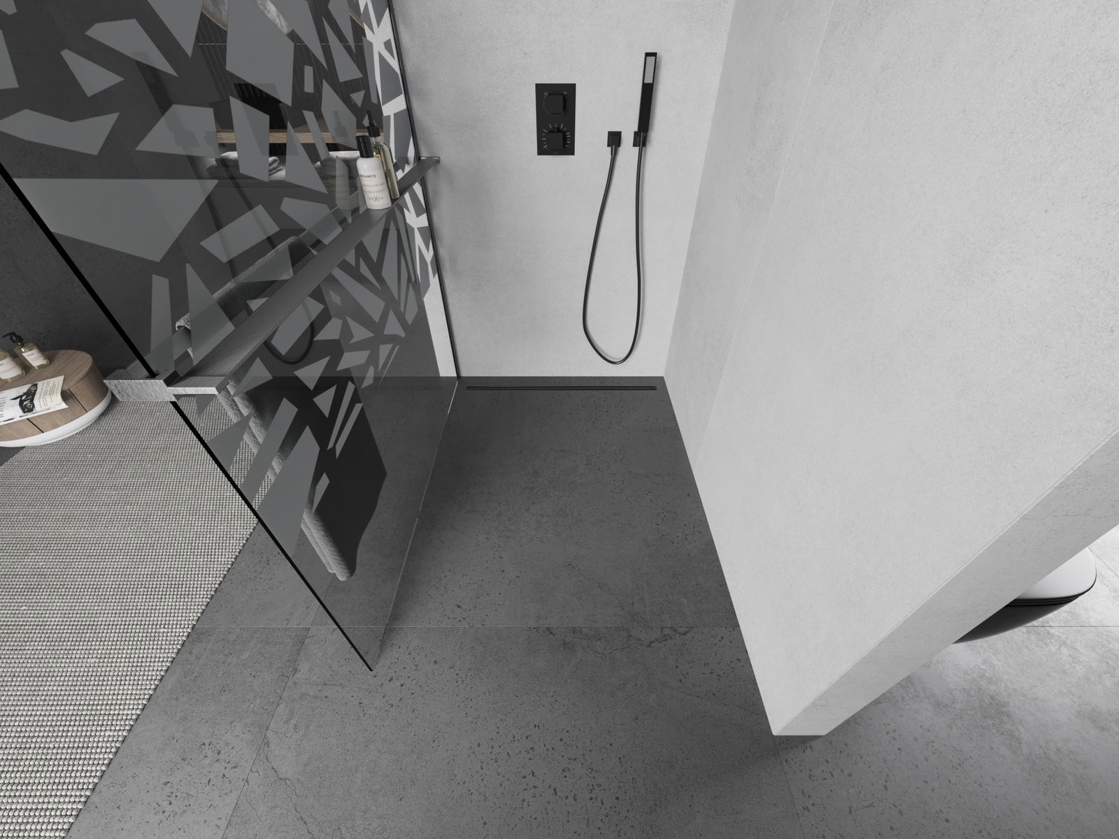 Mexen Kioto+ paroi de douche avec étagère Walk-in 100 x 200 cm, motif blanc, gris pistolet brossé - 800-100-121-66-85