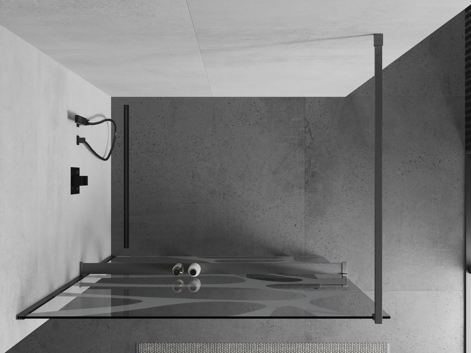 Mexen Kioto+ paroi de douche avec étagère Walk-in 100 x 200 cm, vague blanche, gris canon brossé - 800-100-121-66-97