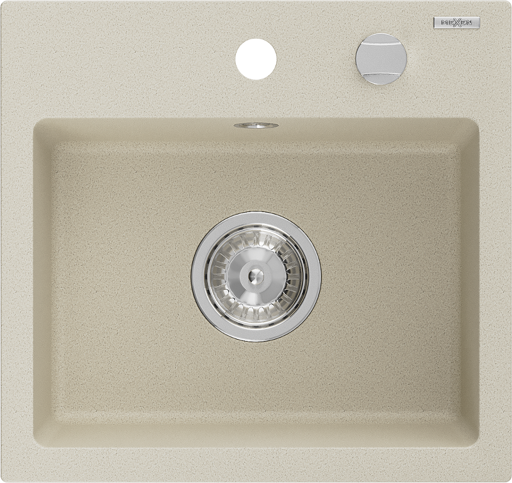 Mexen Milo évier en granit 1 bac 435 x 410 mm, beige, siphon chromé - 6505441000-69