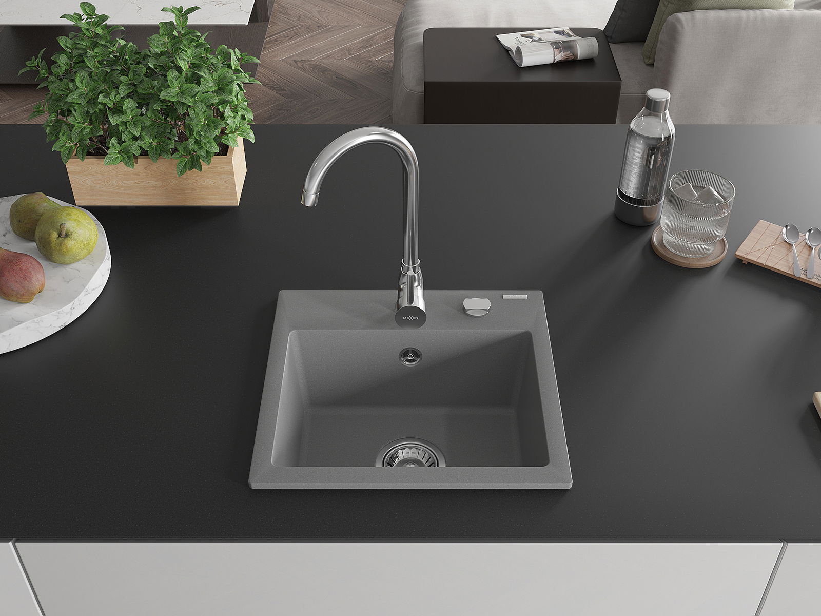Mexen Milo évier en granit 1 bac 435 x 410 mm, gris, siphon chromé - 6505441000-71