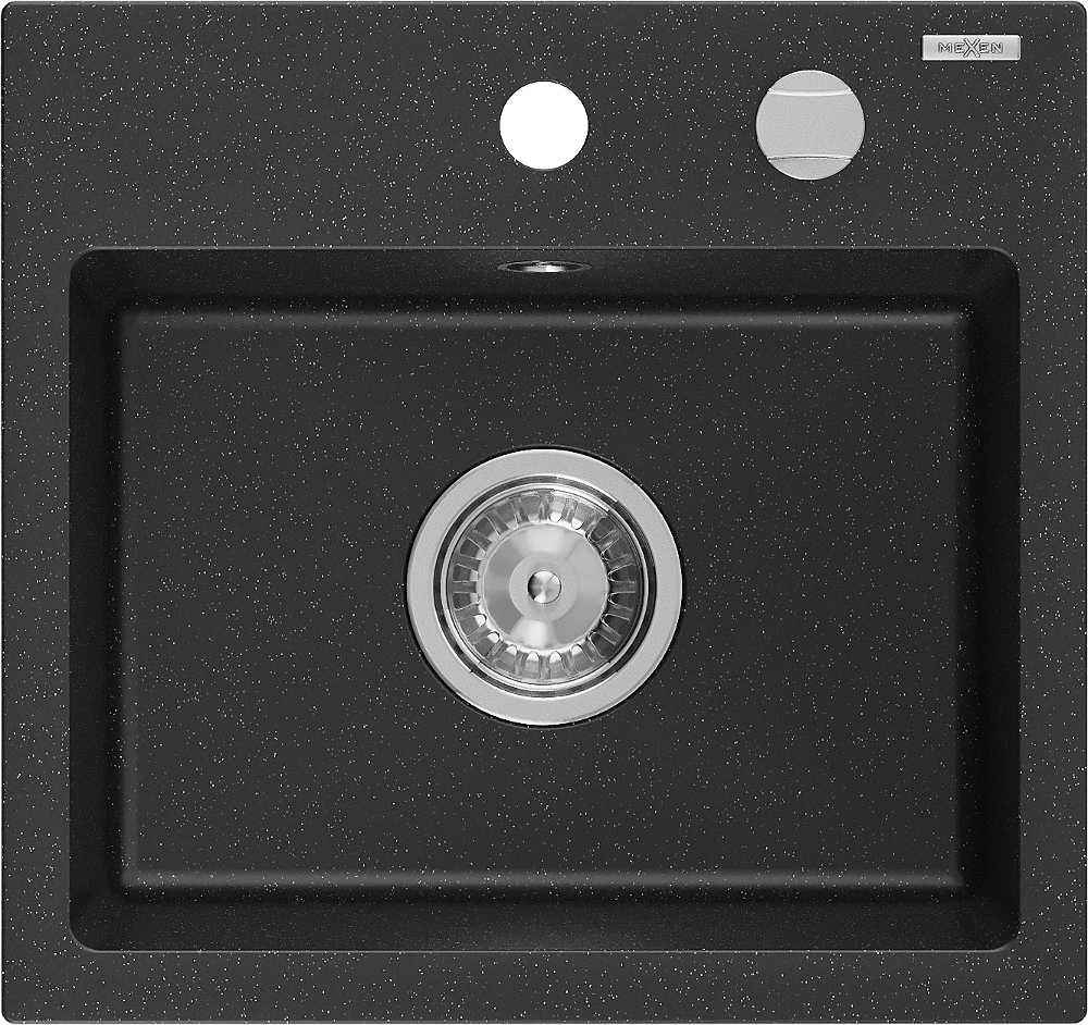 Mexen Milo évier granite 1 bac 435 x 410 mm, noir/argent métallisé, siphon chromé - 6505441000-73