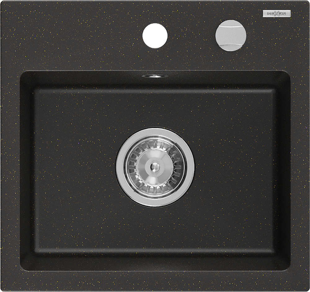Mexen Milo évier en granit 1 bac 435 x 410 mm, noir/doré métallisé, siphon chrome - 6505441000-75