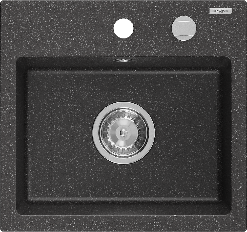 Mexen Milo évier en granit 1 bac 435 x 410 mm, noir moucheté, siphon chromé - 6505441000-76