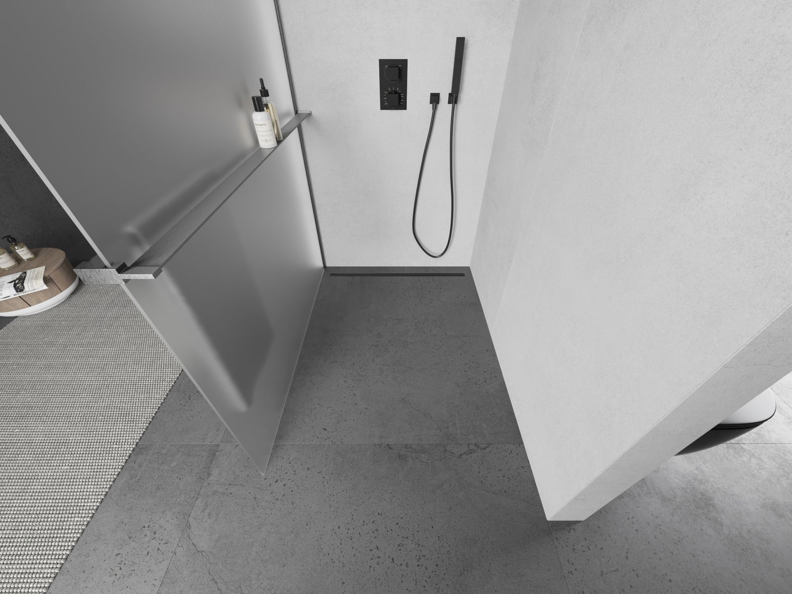 Mexen Kioto+ paroi de douche avec étagère Walk-in 140 x 200 cm, dépoli, gun metal - 800-140-121-95-30