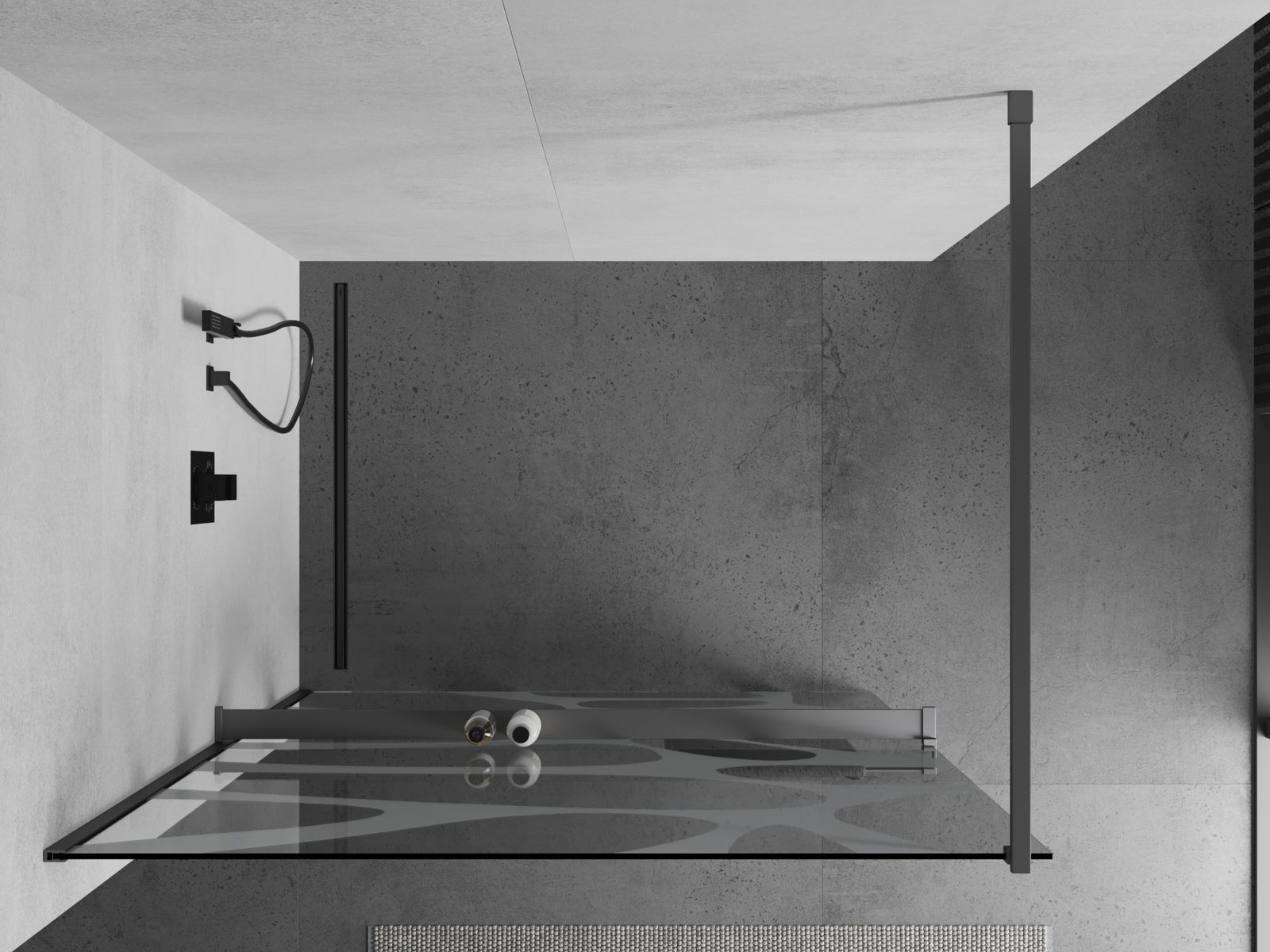 Mexen Kioto+ paroi de douche avec étagère Walk-in 120 x 200 cm, vague blanche, métal gun - 800-120-121-95-97