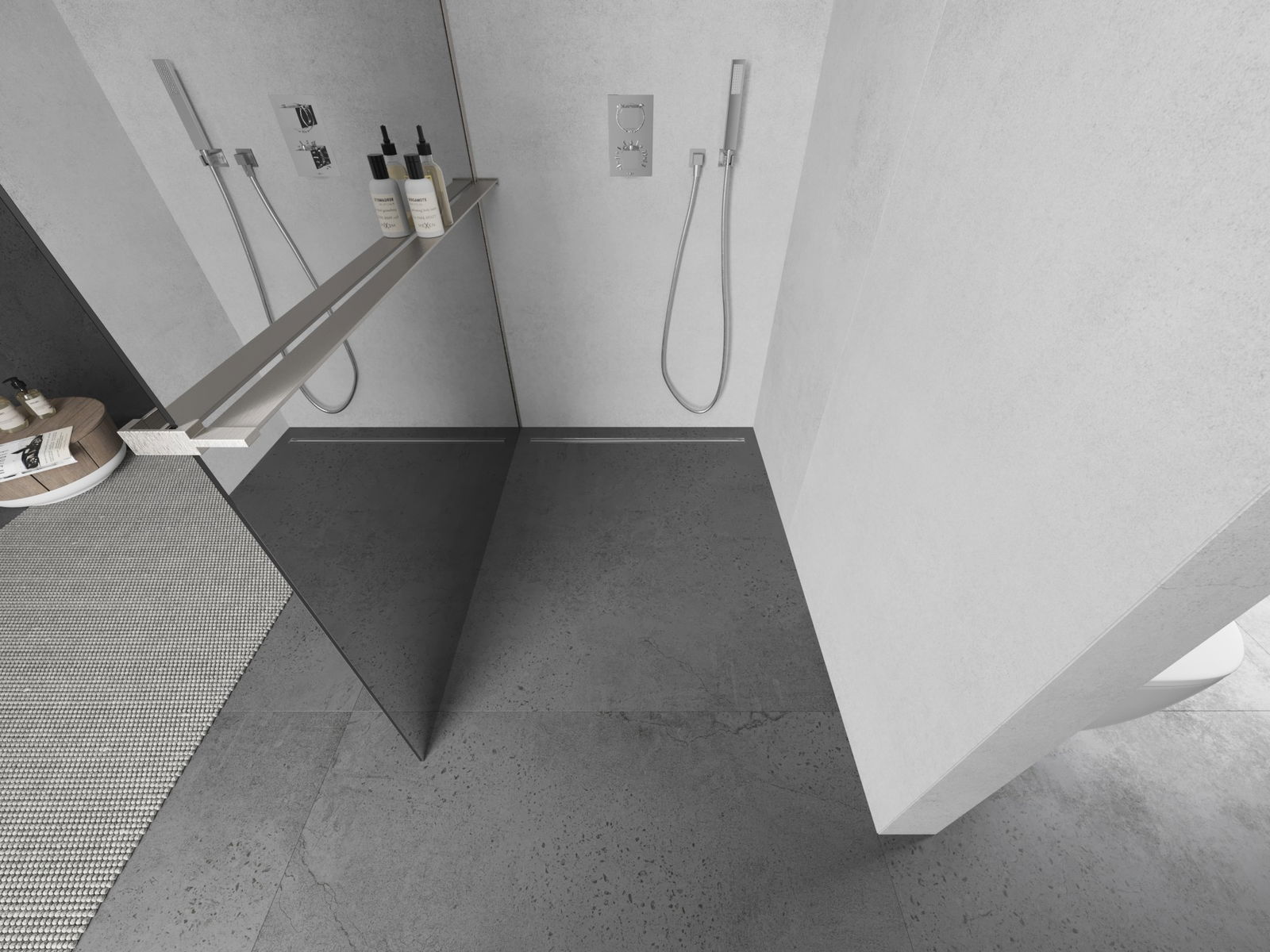 Mexen Kioto+ paroi de douche avec étagère Walk-in 110 x 200 cm, miroir, nickel brossé - 800-110-121-97-50
