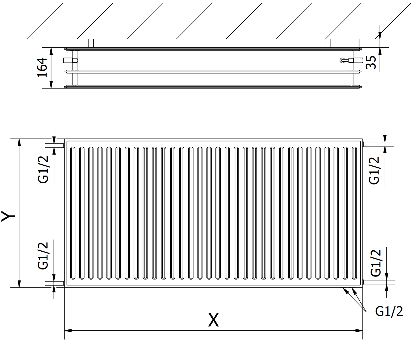Les photos montrent le radiateur en taille 600 x 1200 mm.