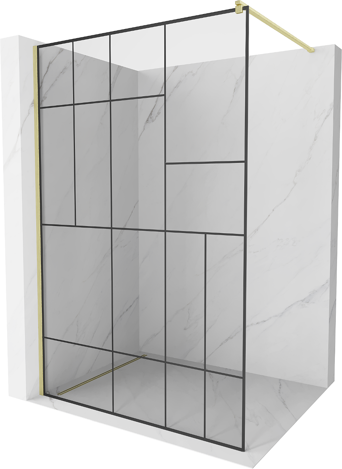 Mexen Kioto paroi de douche Walk-in 70 x 200 cm, motif noir 8 mm, or brossé - 800-070-101-55-78