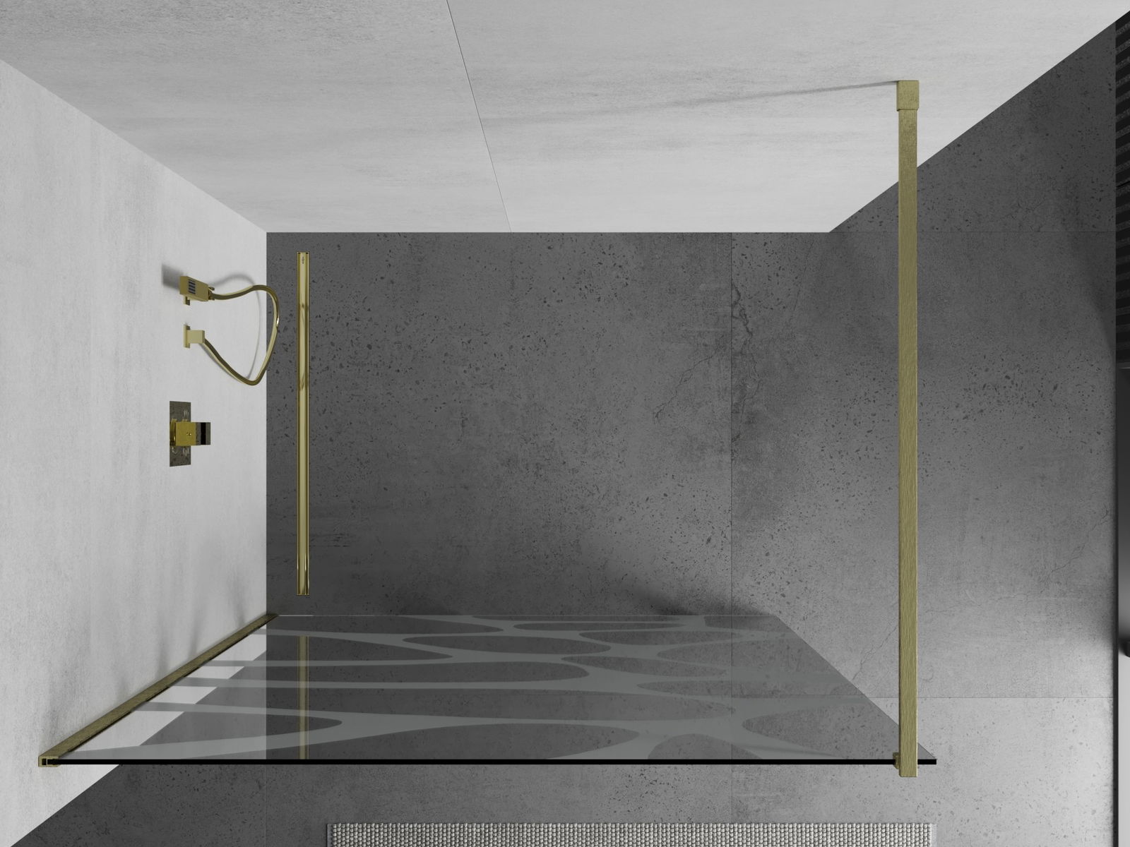 Mexen Kioto paroi de douche Walk-in 130 x 200 cm, vague blanche 8 mm, or brossé - 800-130-101-55-97