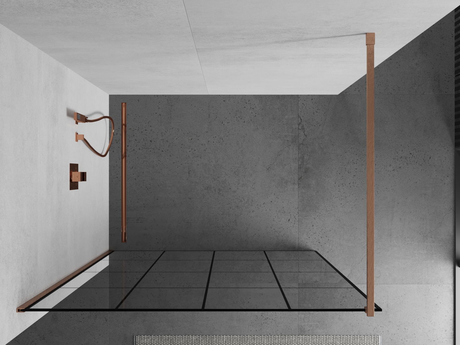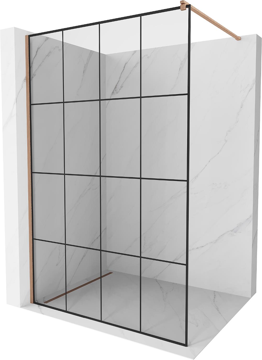Mexen Kioto Paroi de douche Walk-in 140 x 200 cm, grille noire 8 mm, cuivre brossé - 800-140-101-65-77