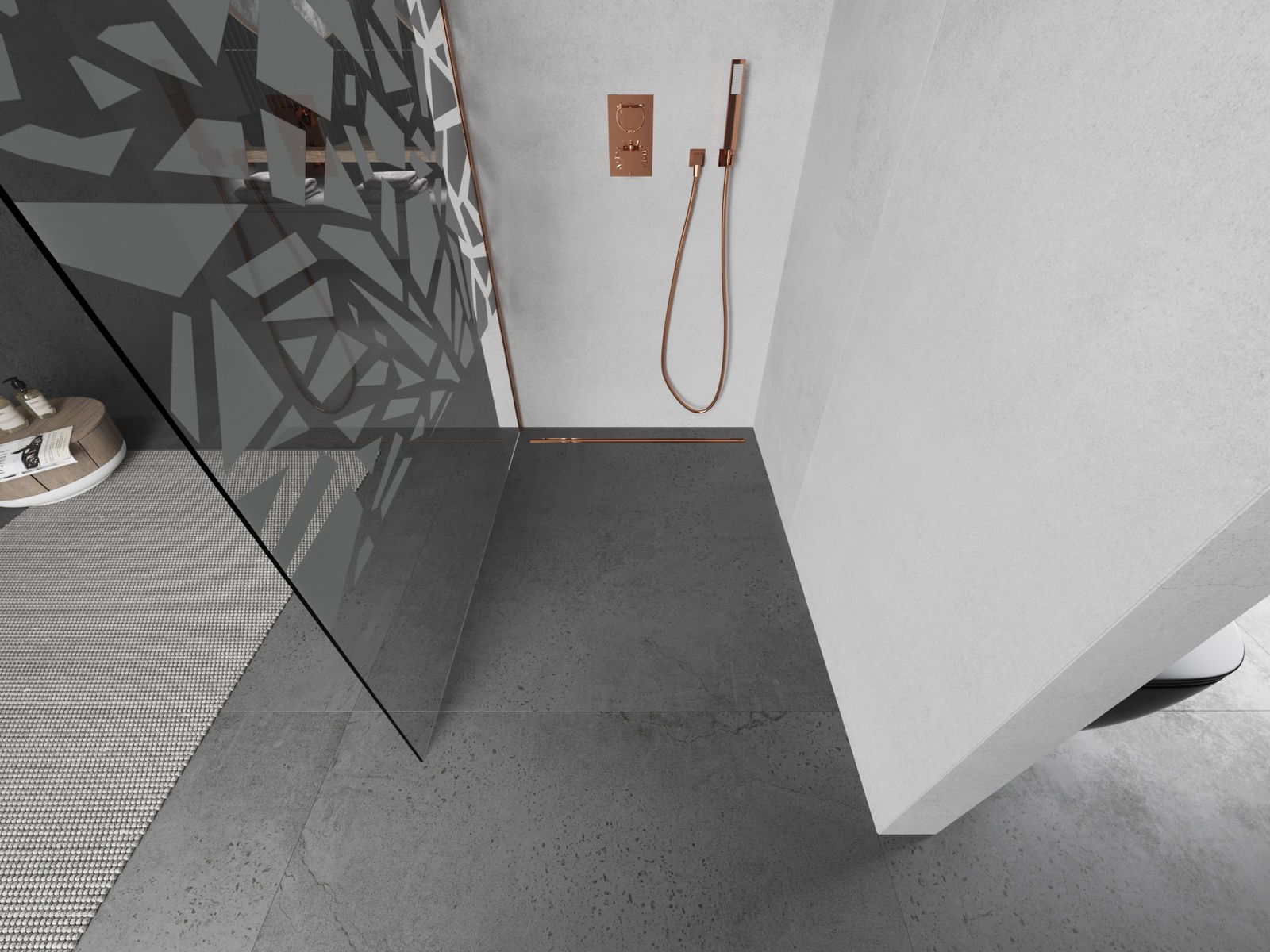 Mexen Kioto panneau de douche Walk-in 90 x 200 cm, motif blanc 8 mm, cuivre brossé - 800-090-101-65-85