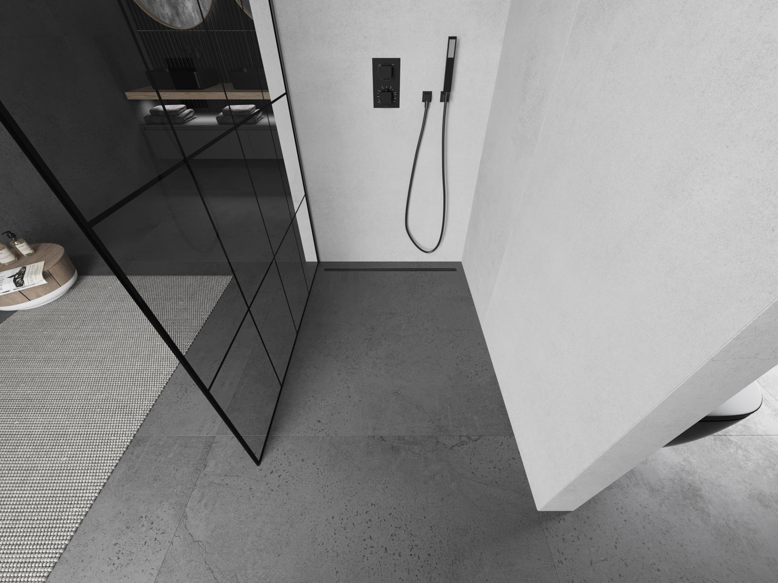 Mexen Kioto cloison de douche Walk-in 140 x 200 cm, grille noire 8 mm, gun metal - 800-140-101-95-77