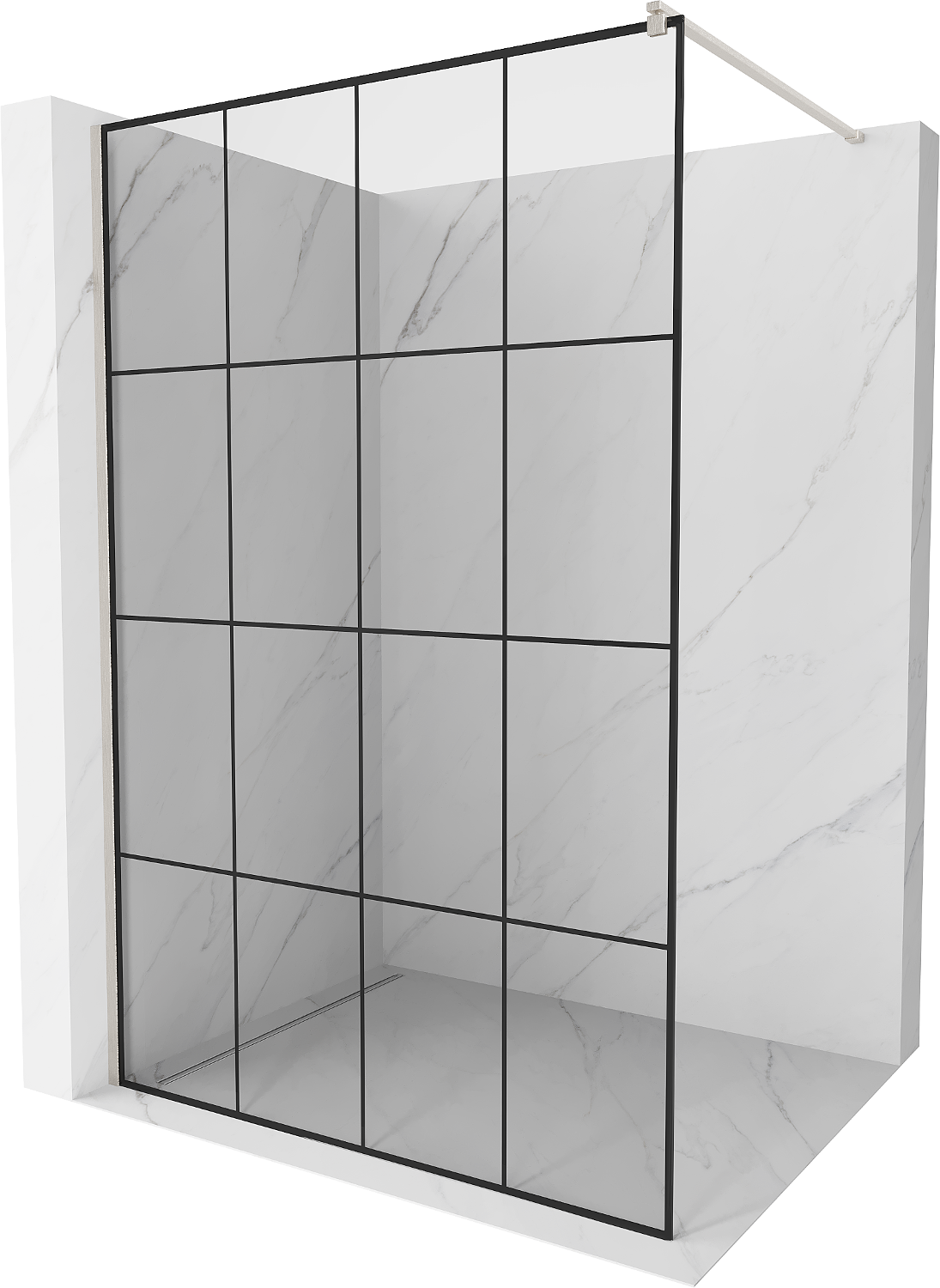 Mexen Kioto paroi de douche Walk-in 160 x 200 cm, grille noire 8 mm, nickel brossé - 800-160-101-97-77