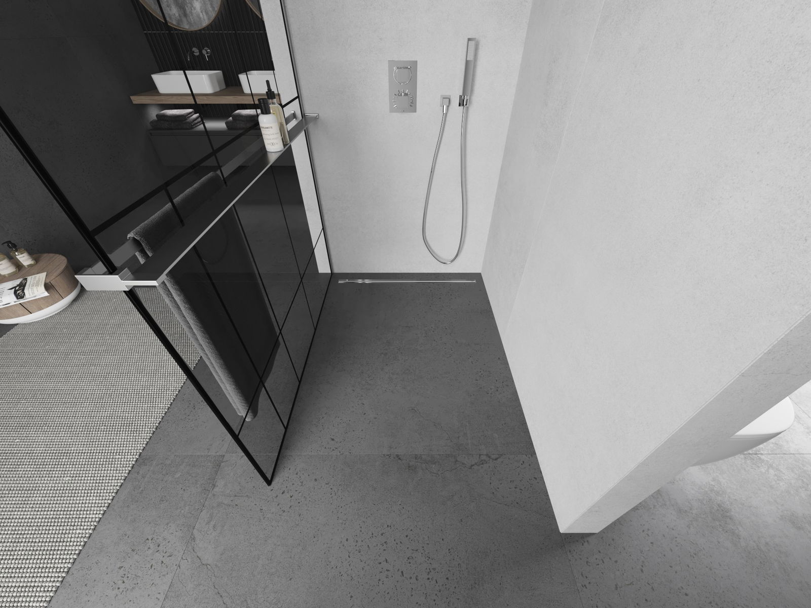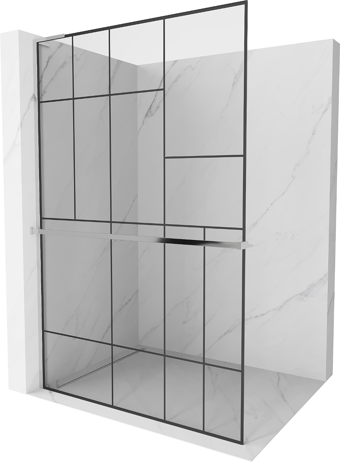 Mexen Kioto+ L paroi de douche avec étagère Walk-in 120 x 200 cm, motif noir, chrome - 800-120-123-01-78