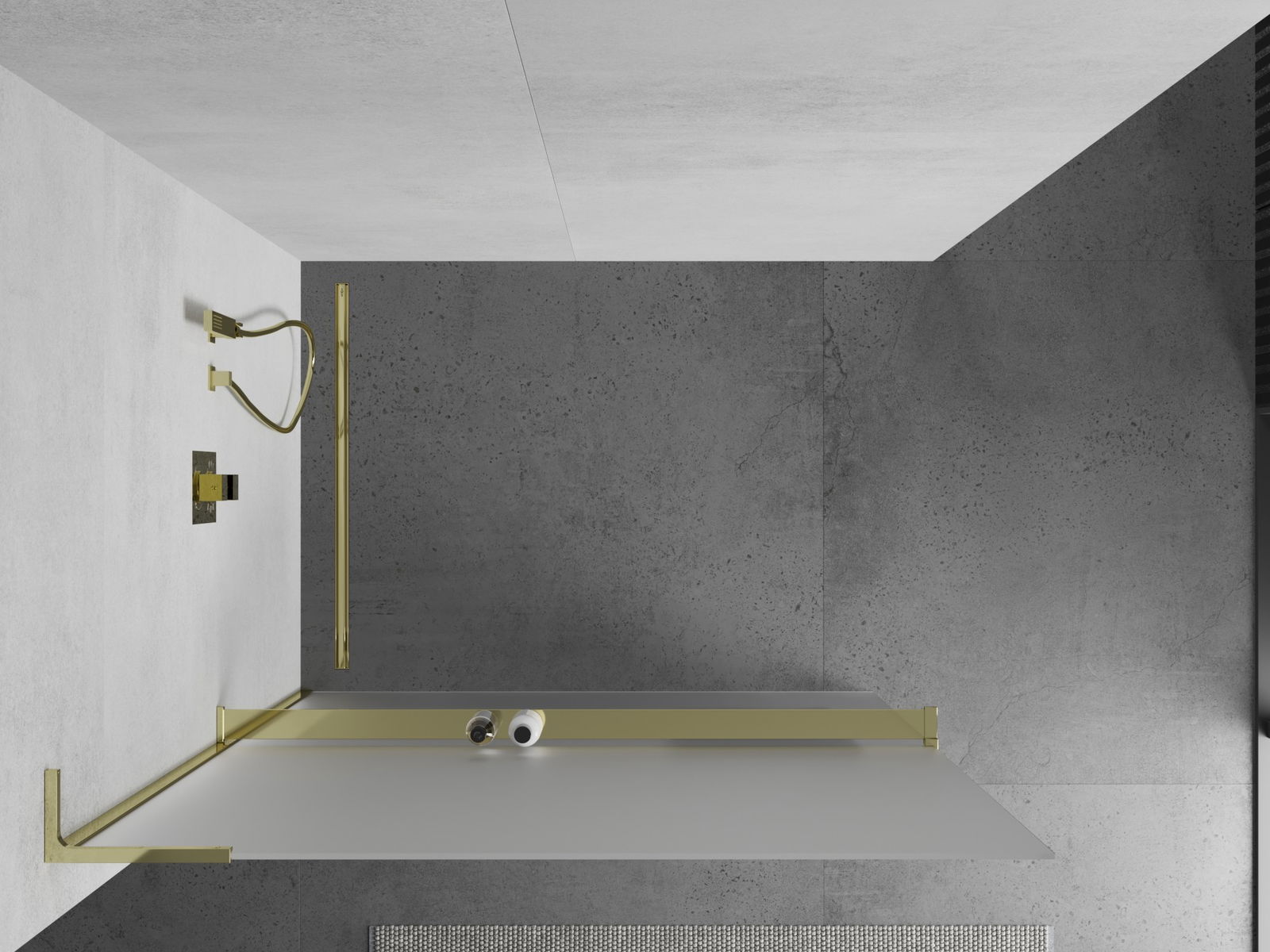 Mexen Kioto+ L paroi de douche avec étagère Walk-in 70 x 200 cm, givre, or - 800-070-123-50-30