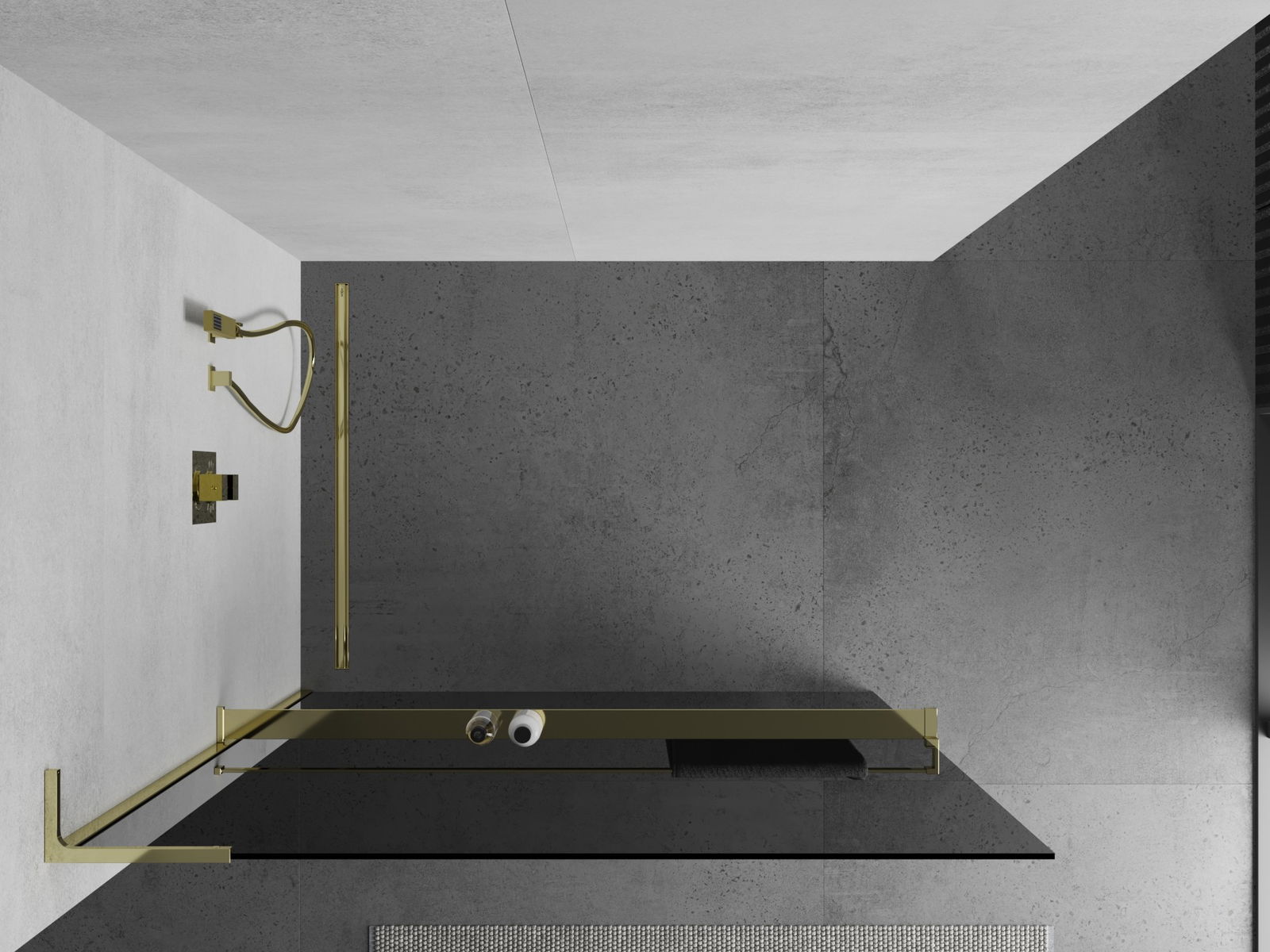 Mexen Kioto+ L paroi de douche avec étagère Walk-in 70 x 200 cm, graphite, or - 800-070-123-50-40